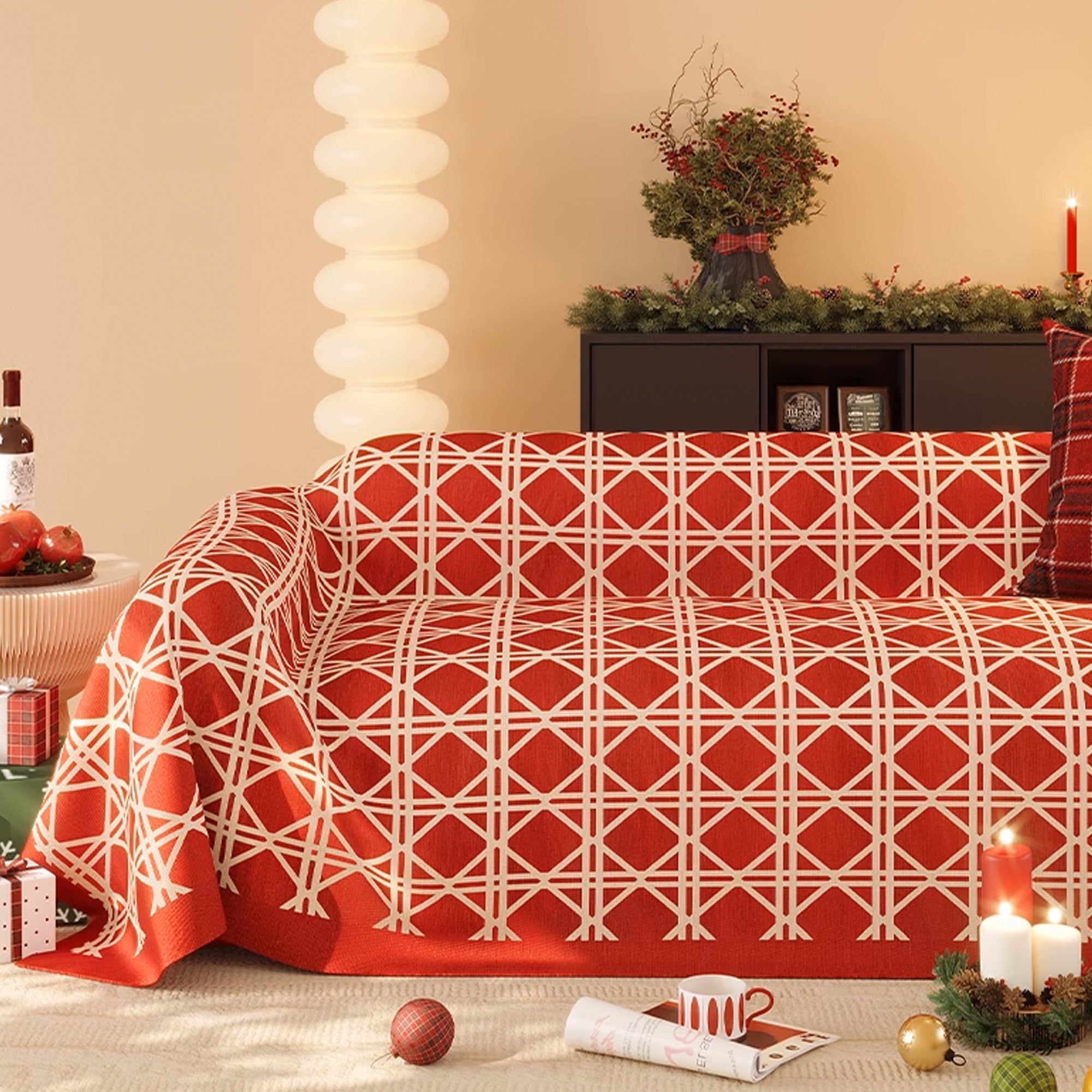 Det røde diamantformede sofatrekket har et dristig og slående design som kombinerer funksjonalitet med moderne stil. Med et diamantformet mønster i en rik rød fargetone gir dette sofatrekket både tekstur og farge til stuen din, noe som gjør det til et iøynefallende tillegg til møblene dine.