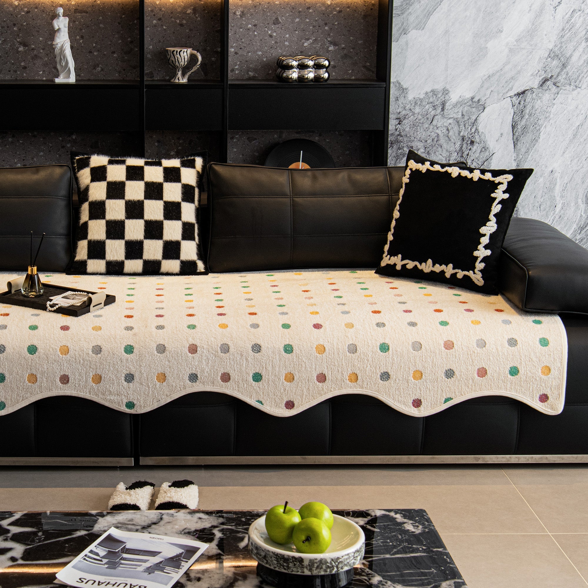 Kremete Dot Plysj Sklisikkert sofatrekk