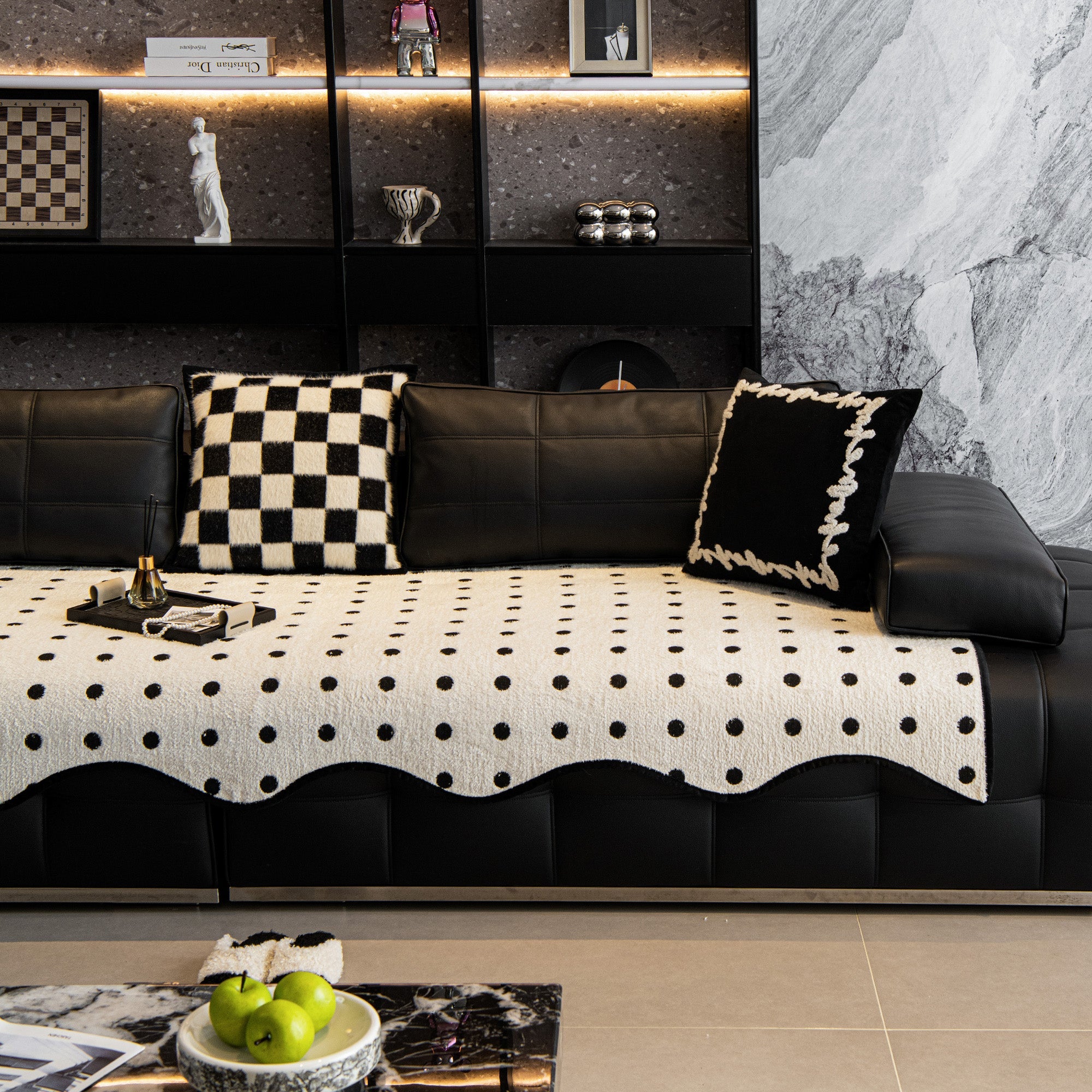 Legg til et lekent, men likevel raffinert preg på stuen din med vårt plysj-kremfargede, sklisikker sofatrekk med polkadotter.