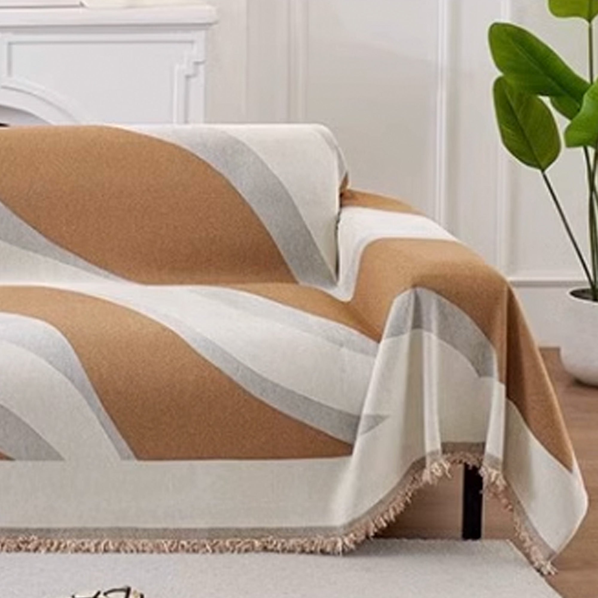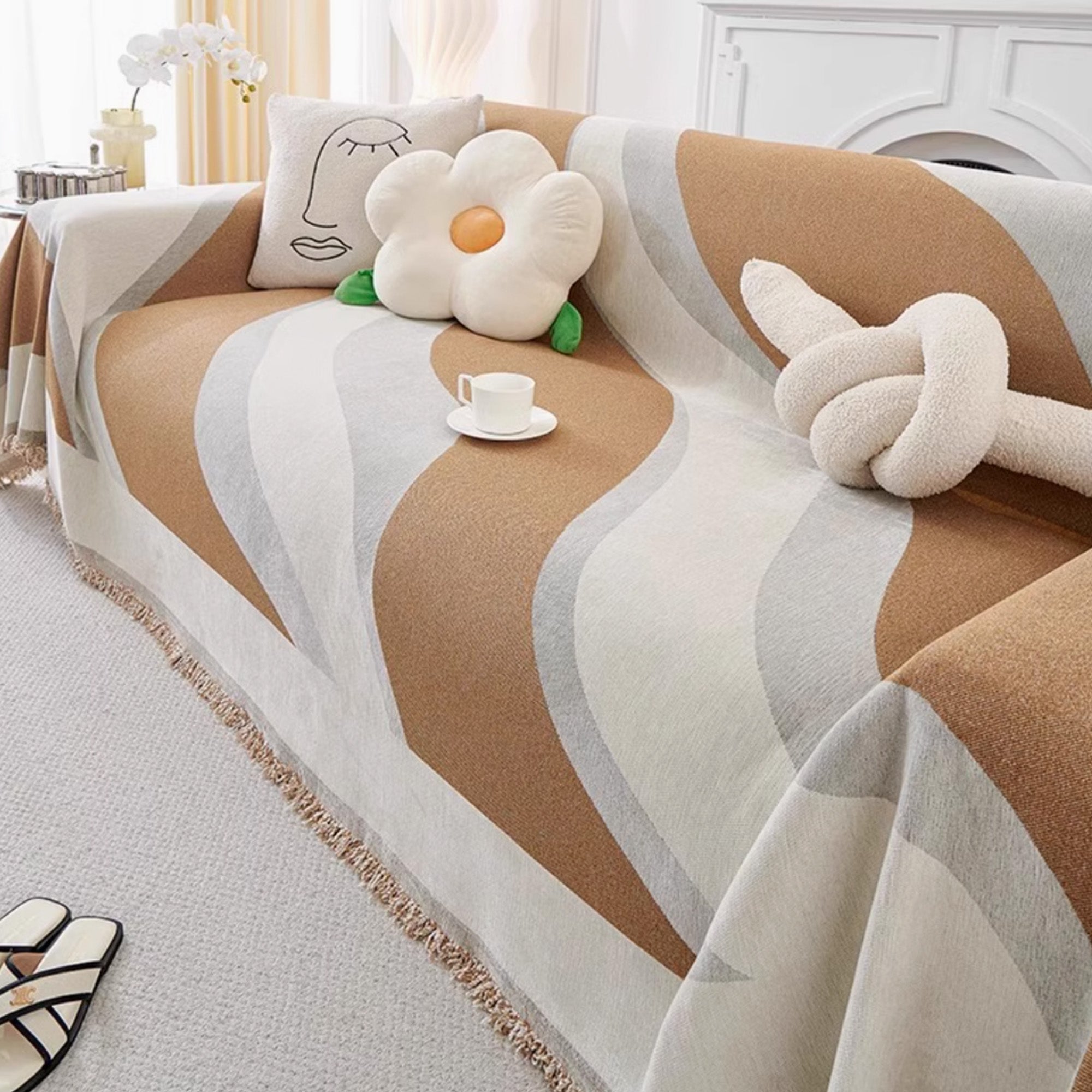 Sofatrekket gir stuen din en moderne og elegant estetikk. Med sine rene linjer og balanserte fargevalg tilfører dette sofatrekket sofistikasjon og stil samtidig som det beskytter møblene dine. Den glatte teksturen og fargeblokkdesignet gjør det til et allsidig og elegant tillegg til ethvert rom.