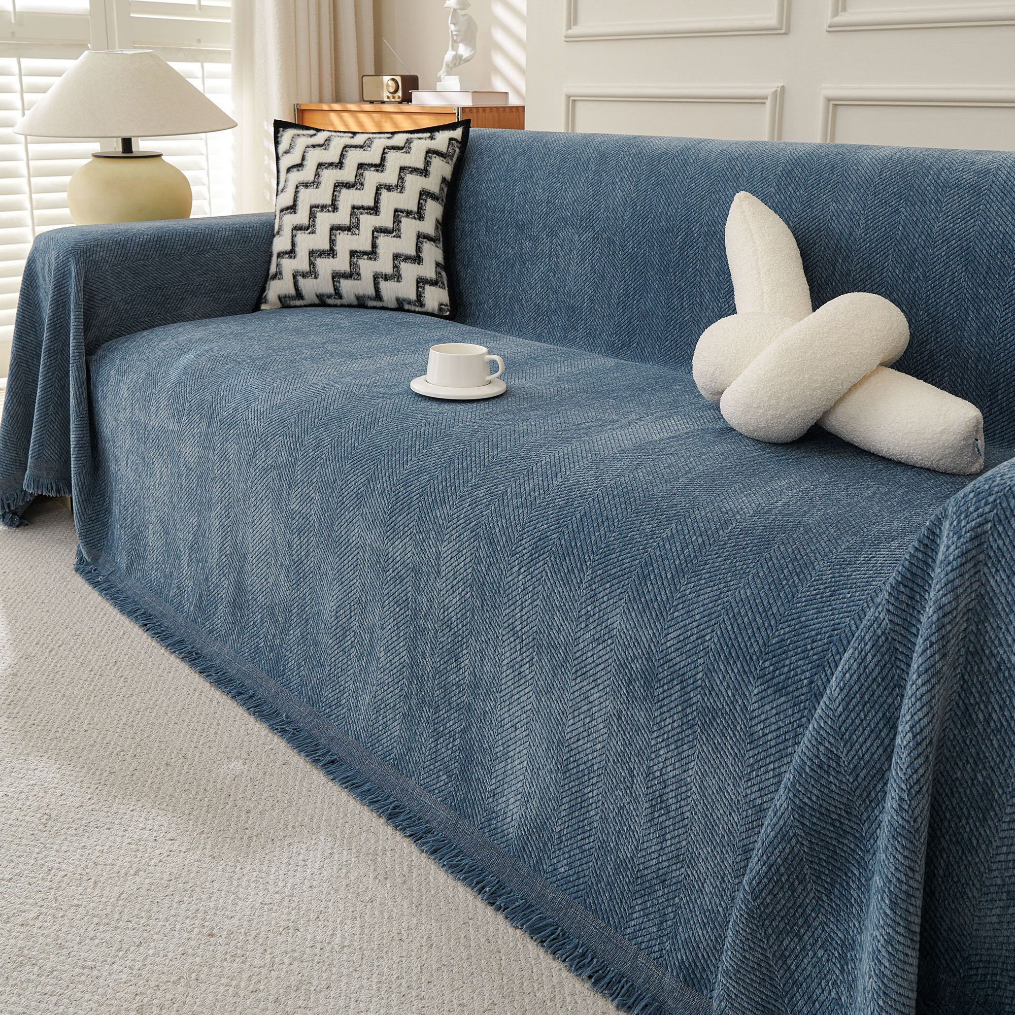 Mykt, pustende, fiskebensmønster, plysj, kjæledyrvennlig, multifunksjonelt, minimalistisk sofatrekk – vevd sofabeskytter