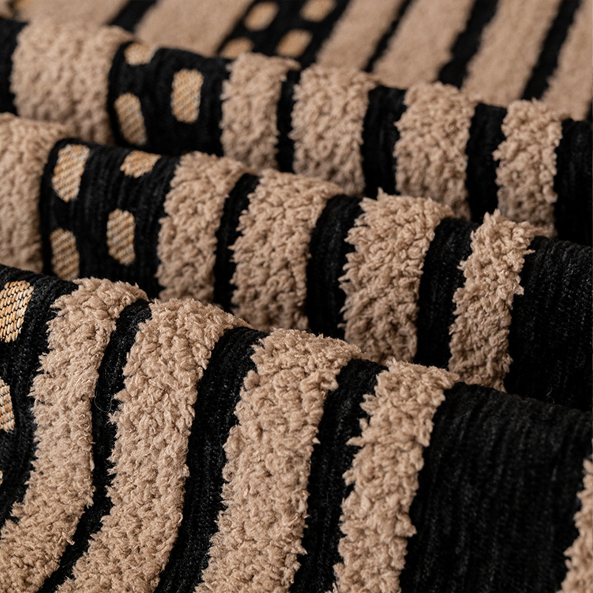 Djerv rytme og myk komfort møtes i Metro Stripe Chenille-sofatrekket. Designet med et nikk til klassiske urbane tekstiler og håndverksveving, blander dette møbelet prikkete og lineære stripemønstre i en rik chenillevev. Høykontrastmotivet gir visuell struktur og kulturell dybde til rommet ditt, mens den myke, tette teksturen inviterer til hverdagsavslapning.