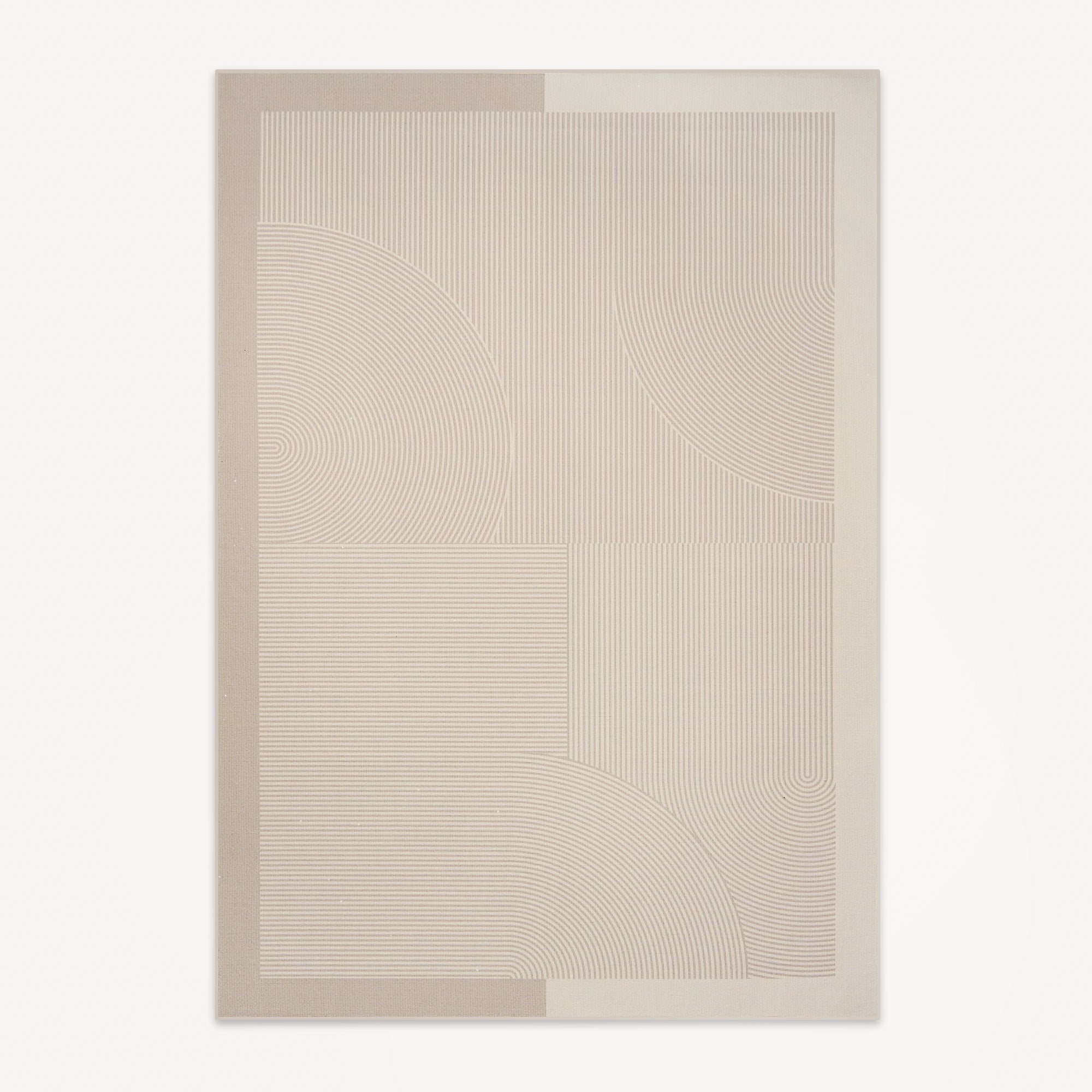 Få en følelse av ro inn i rommet ditt med vårt Sand Ripple Border Area Rug. Dette teppet har myke, bølgelignende mønstre som minner om sanddyner, komplementert av en bred, nøytralfarget kant som rammer inn designet vakkert. De beroligende beige tonene og den subtile teksturen skaper en fredelig atmosfære, perfekt for minimalistiske og moderne interiører. Laget av slitesterke, lettstelte fibre, er dette teppet ideelt for områder med mye trafikk, samtidig som det gir en koselig og innbydende overflate under føttene.