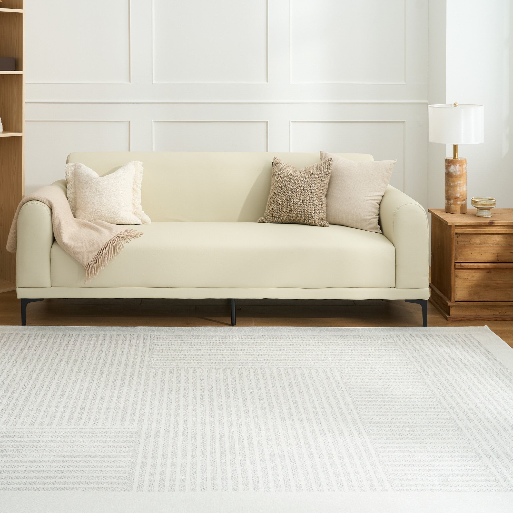 Lett å rengjøre og vaskbart teppe med abstrakt teksturert stripete vevd design, slitesterkt, sølesikkert, kjæledyrvennlig, sklisikkert teppe til stuen