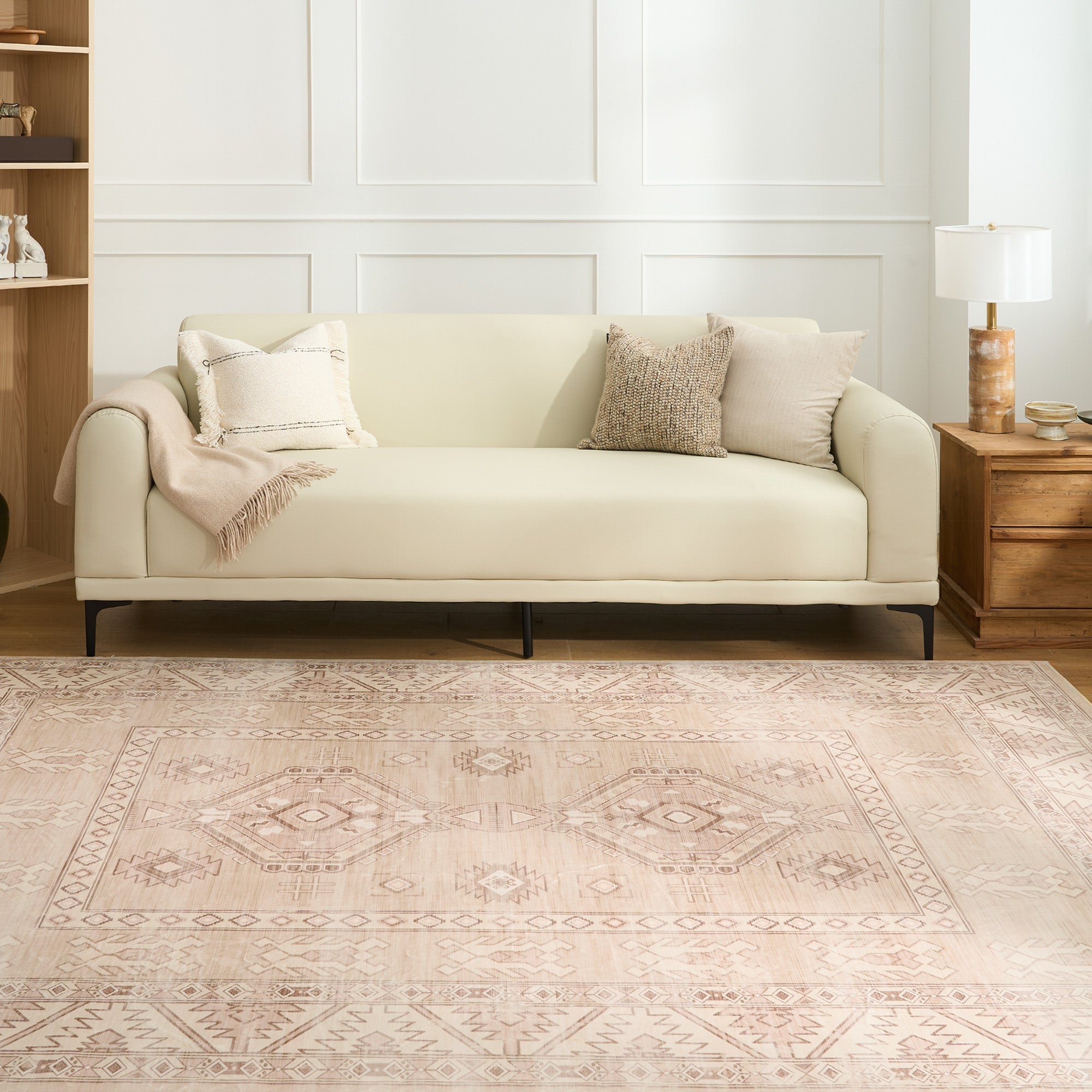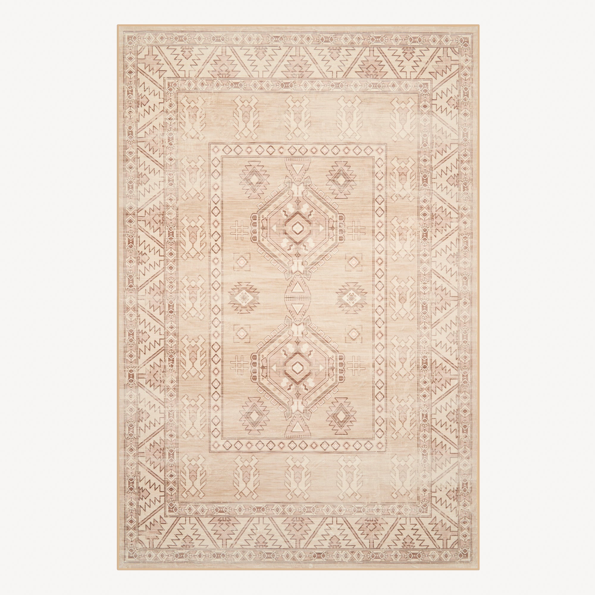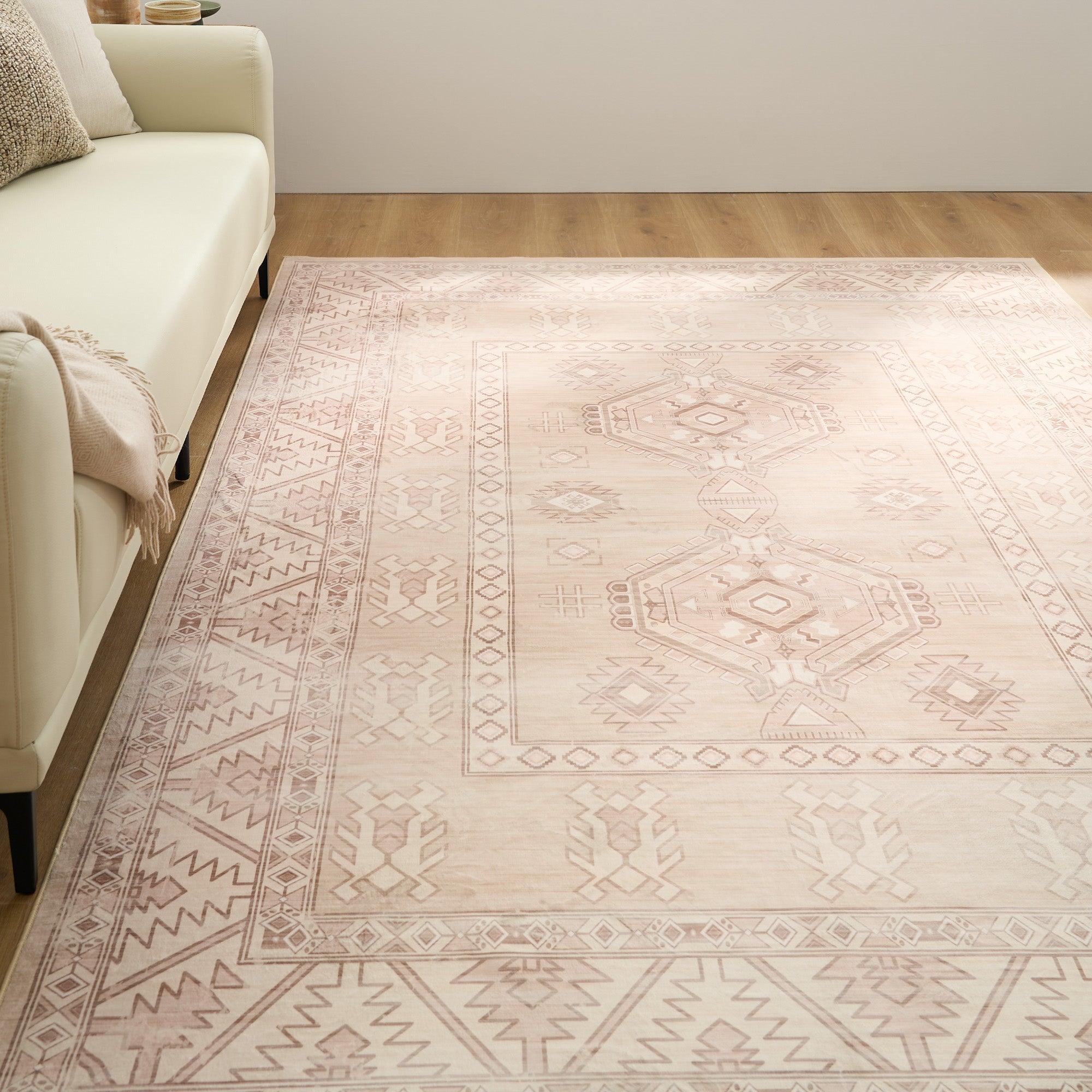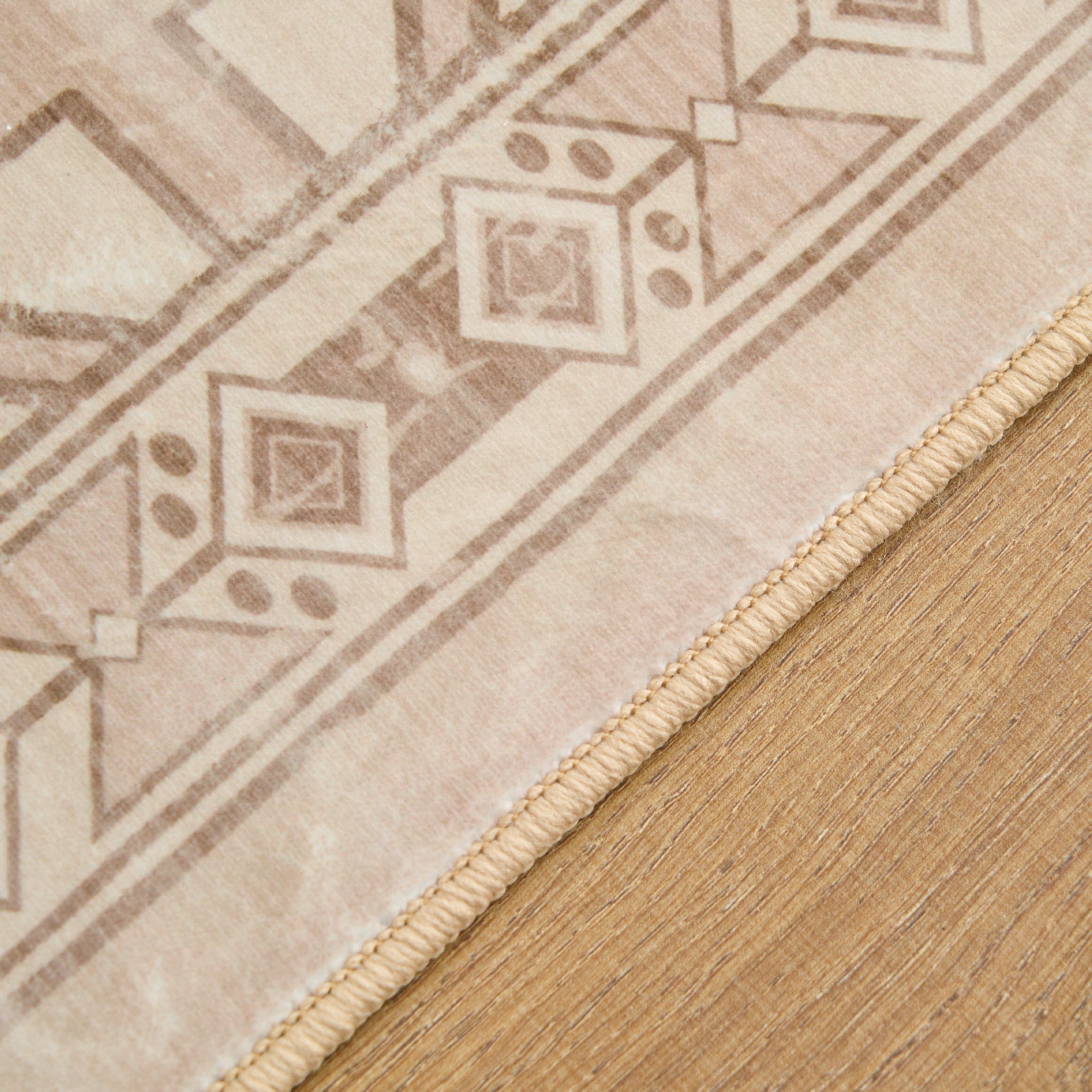 Lett å rengjøre og vaskbart teppe, bohemsk geometrisk rustikk ørkendesign, slitesterkt, sølesikkert, kjæledyrvennlig, sklisikkert teppe til stue