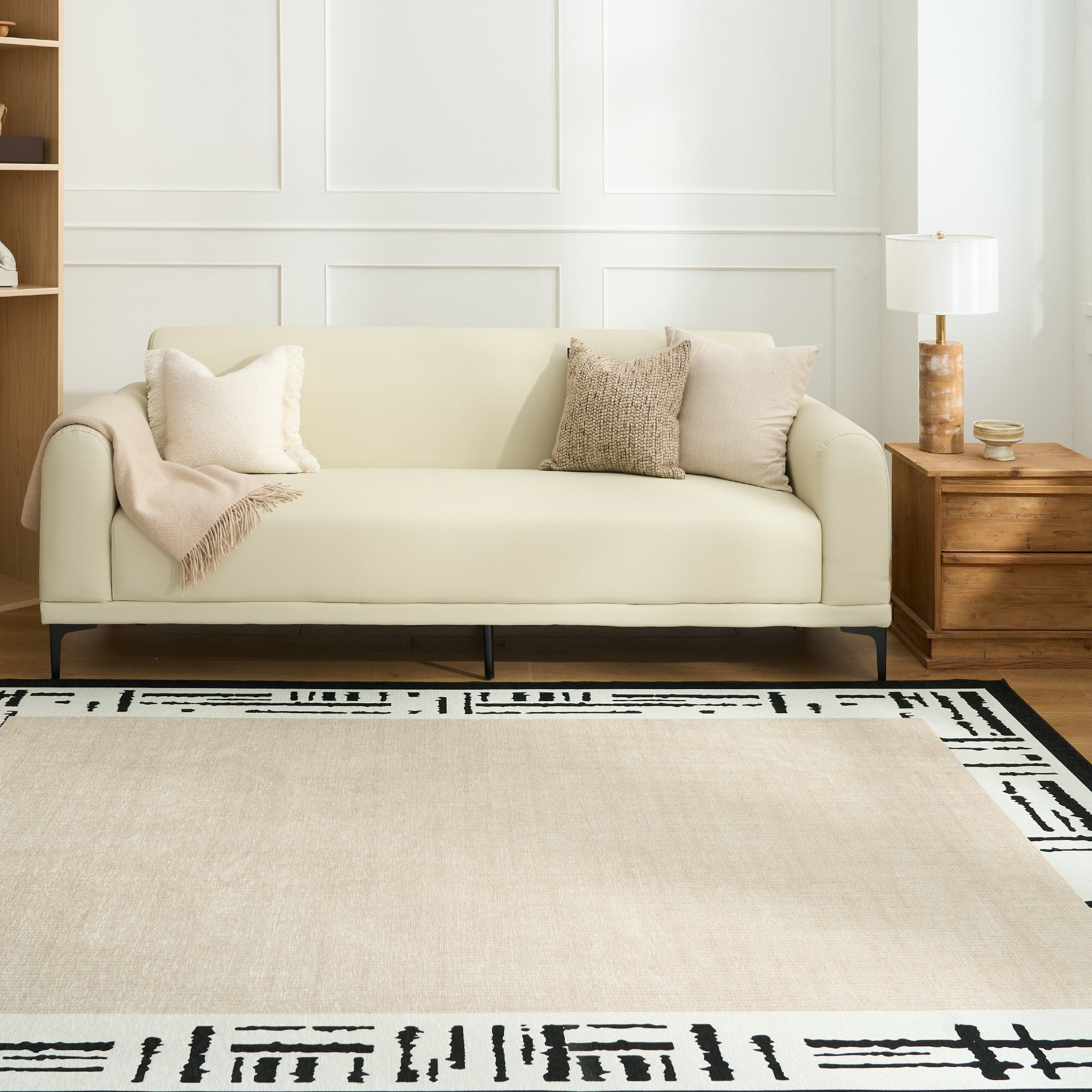 Lett å rengjøre, vaskbart teppe, moderne, abstrakt, kantet, nøytralt design, slitesterkt, sølesikkert, kjæledyrvennlig, sklisikkert teppe til stue