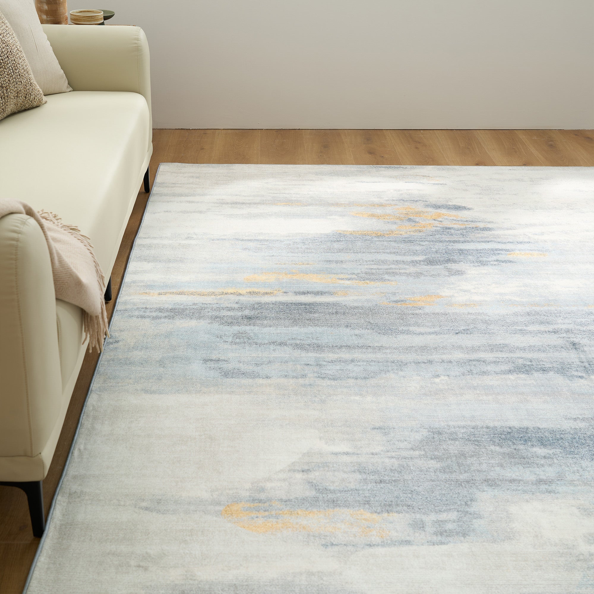 Lett å rengjøre og vaskbart teppe Moderne abstrakt nøytral børstet design Slitesterkt sølesikkert Kjæledyrvennlig sklisikkert teppe til stue