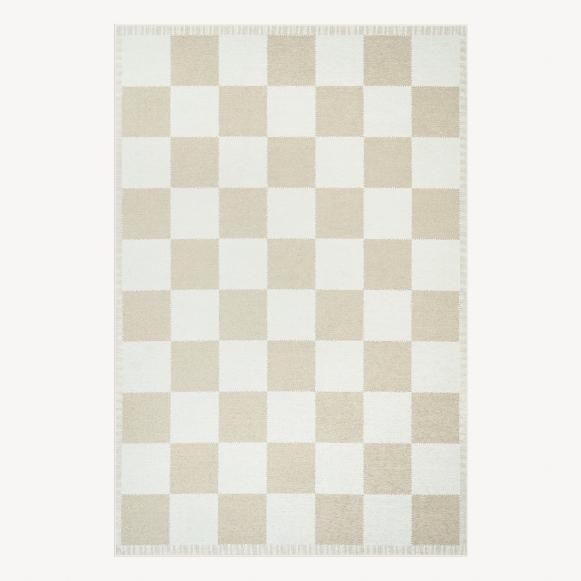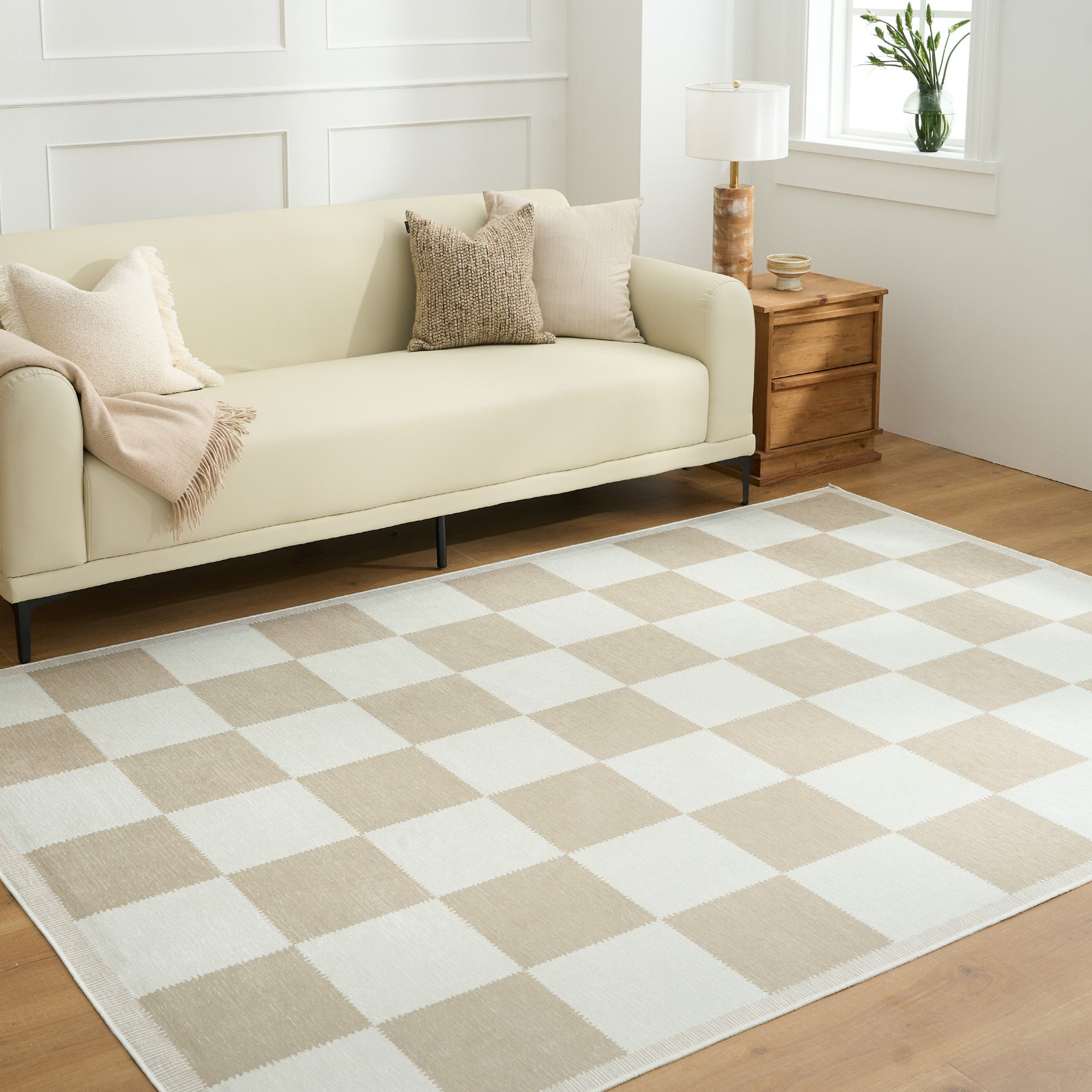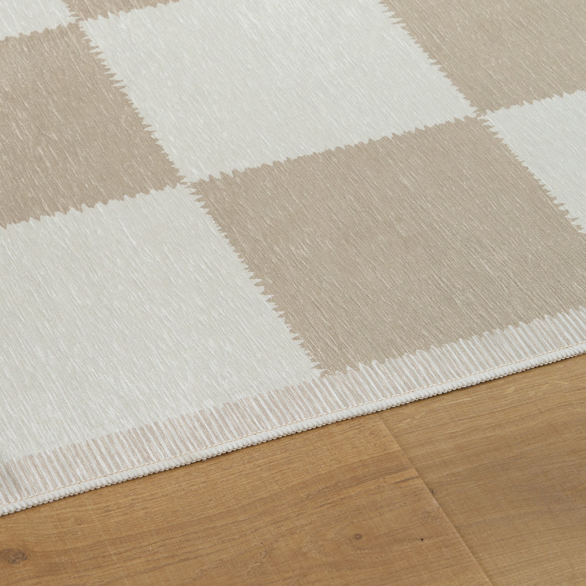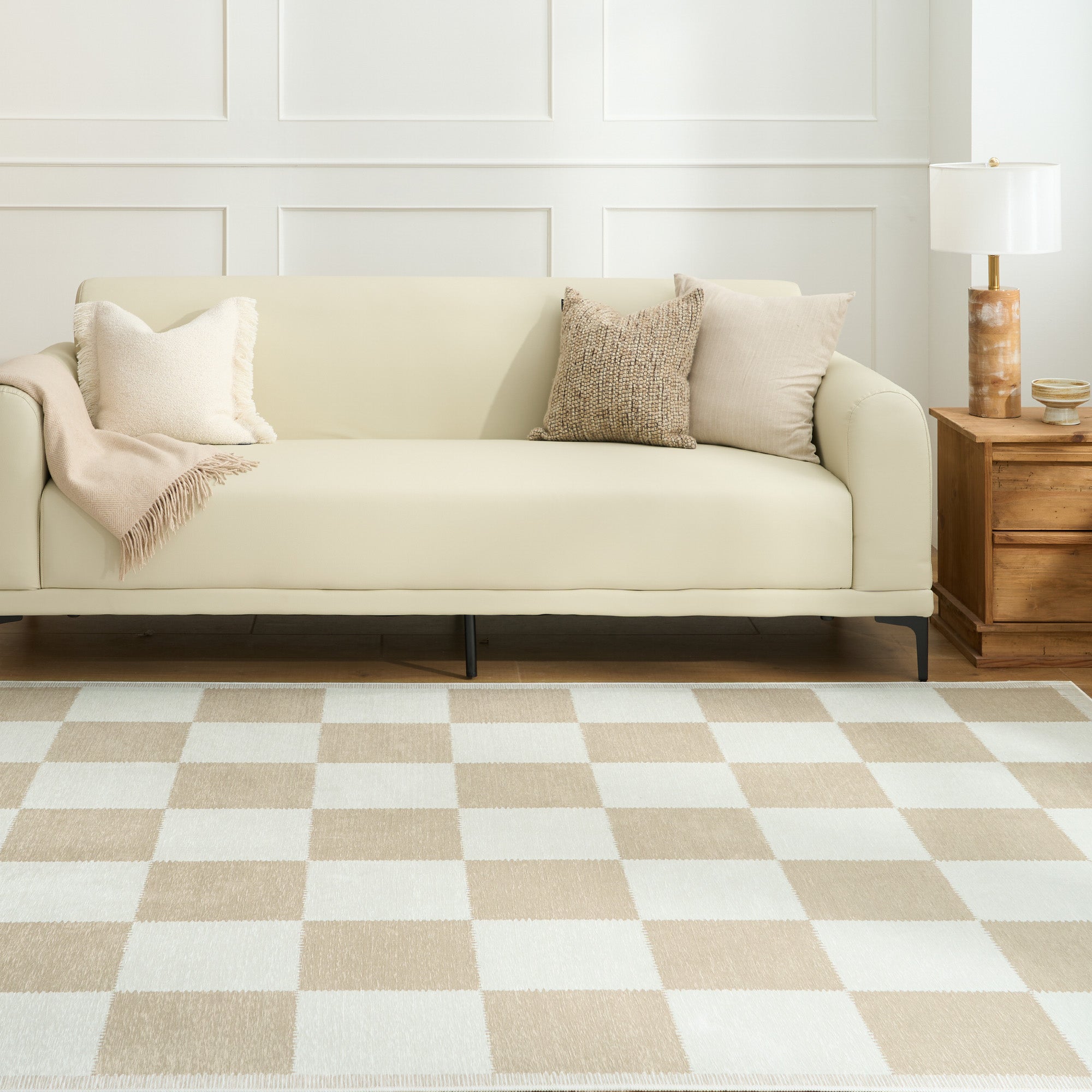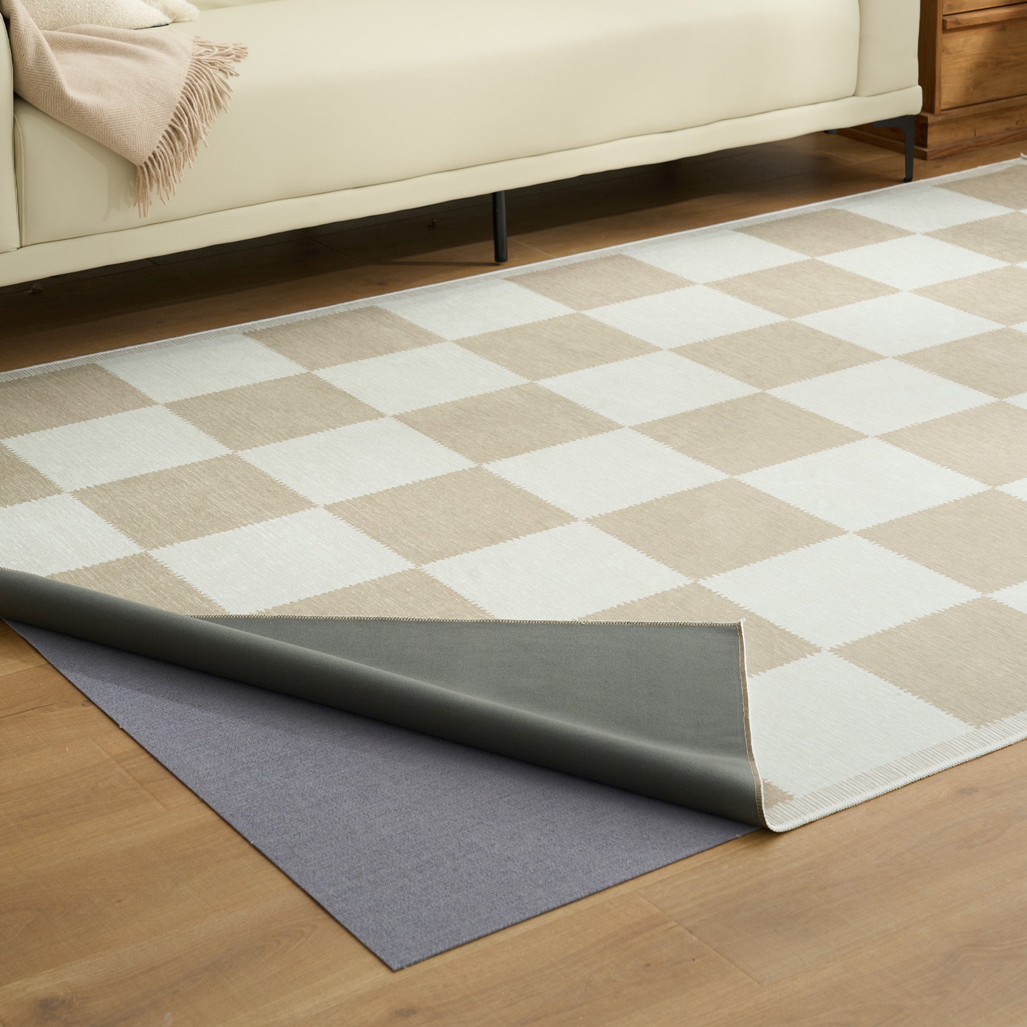 Lett å rengjøre og vaskbart teppe tidløst beige rutete design slitesterkt sølesikkert kjæledyrvennlig sklisikkert teppe til stuen