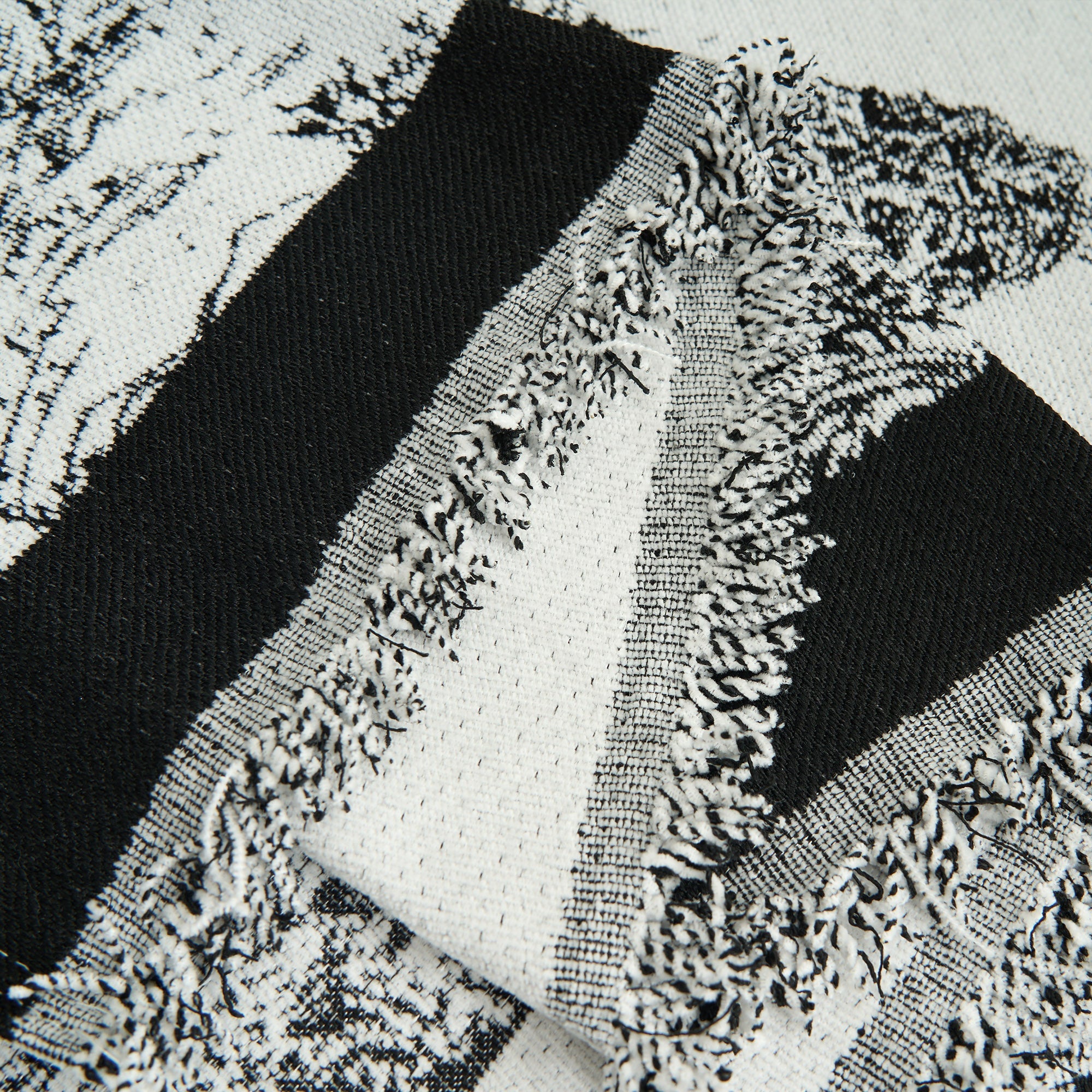 •Avsluttet med stilige frynsede kanter for ekstra tekstur