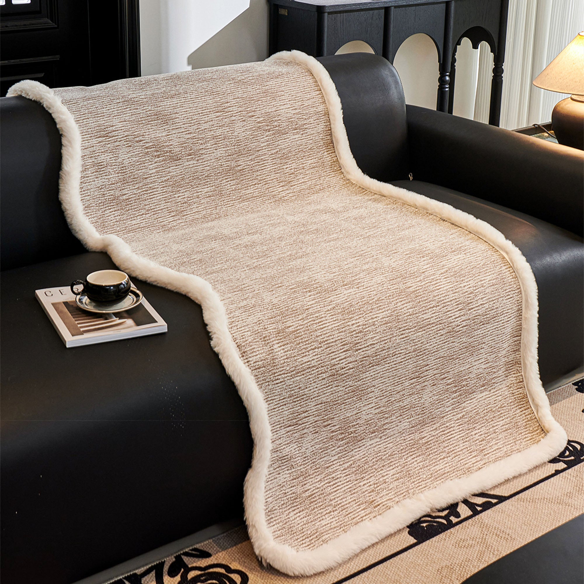 Koselig fluffy chenille sofatrekk med plysjkant