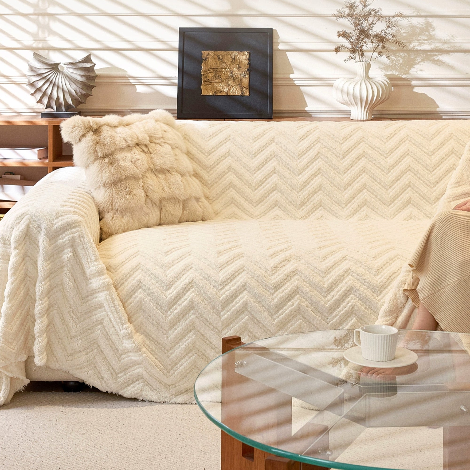 Pakk sofaen din inn i koselig luksus med vårt myke fiskebensmønstertrekk. Det myke, høyluvede plysjstoffet og den skulpturerte fiskebensteksturen gir varme og dybde samtidig som det beskytter setene dine mot daglig slitasje, dyrepels og riper. Slitesterkt, kjæledyrvennlig og enkelt å style, frisker det opp ethvert rom på sekunder.