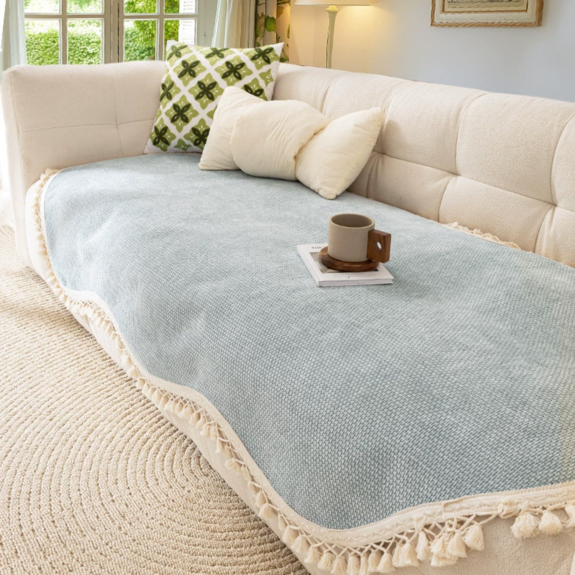 Tilfør eleganse og komfort til stuen din med Tassel Grace Chenille sklisikkert sofatrekk. Dette trekket er designet med en myk chenilletekstur og lekne duskkanter, og gir varme og sjarm til innredningen din. Den sklisikre baksiden sikrer at det holder seg sikkert på plass, mens det slitesterke, kjæledyrvennlige stoffet beskytter mot riper, søl og daglig slitasje. Perfekt for å forbedre både stil og praktisk bruk i hjemmet ditt.
