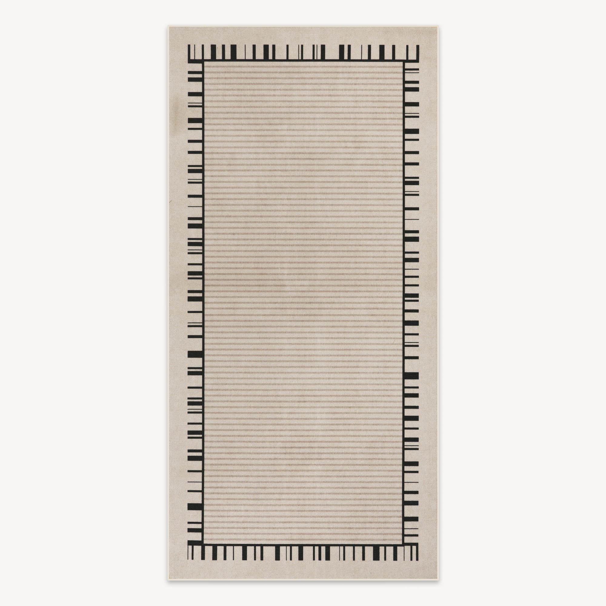 Tilfør et snev av moderne raffinement til rommet ditt med vårt Linear Elegance Border-teppe. Dette stilige løperteppet har et minimalistisk beige design fremhevet av en unik svart lineær kant, noe som skaper et slående, men balansert utseende. Det subtile lineære mønsteret og de nøytrale tonene gjør det ideelt for å forbedre innredningen på soverom, ganger eller inngangspartier. Dette teppet er laget av slitesterke, lettstelte materialer, og er perfekt for områder med mye trafikk, og kombinerer både estetikk og funksjonalitet i en sømløs blanding.
