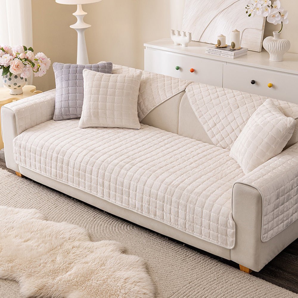 Luksuriøst quiltet flanelltrekk til sofa, sklisikkert