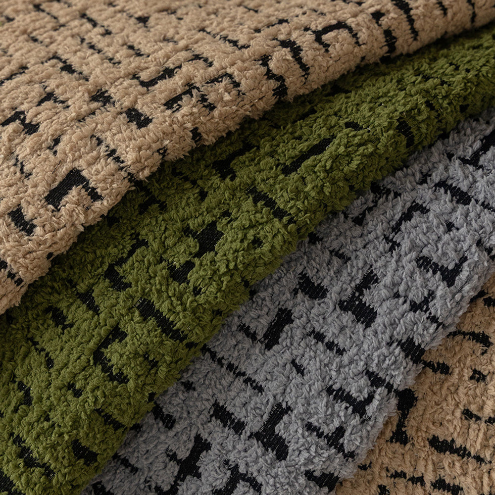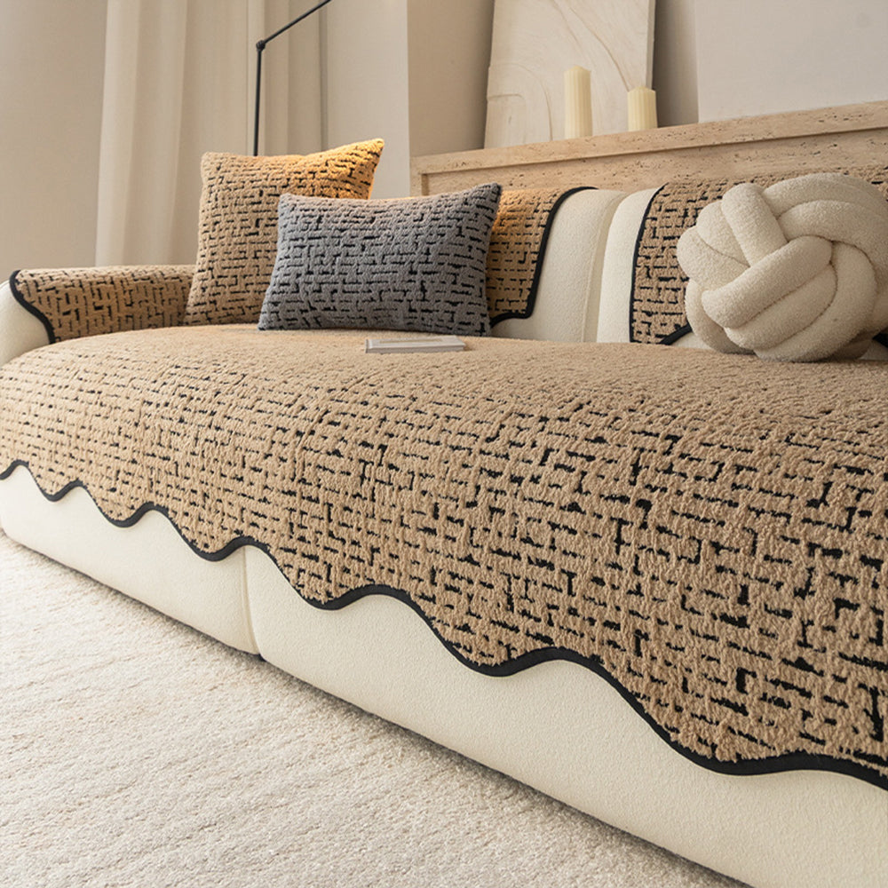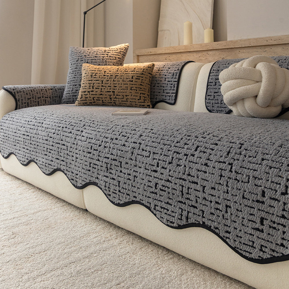 Legg til sofistikert tekstur og komfort i hjemmet ditt med vårt moderne bølgemønster-trekk til plysj, sklisikkert sofatrekk. Dette trekket er designet for de kjøligere høst- og vintermånedene, og har en uregelmessig bølgekant og en unik geometrisk vev for et raffinert og kunstnerisk preg. Det tette, kortluvede plysjstoffet gir varme og mykhet, samtidig som det opprettholder holdbarhet og slitestyrke.