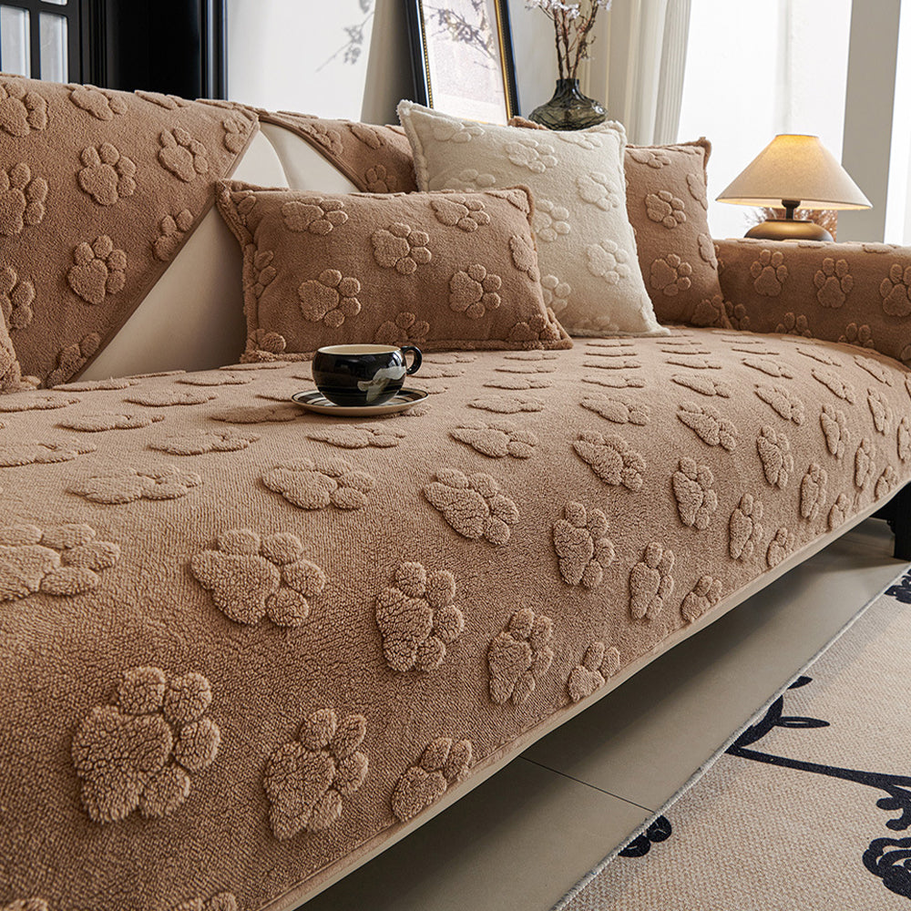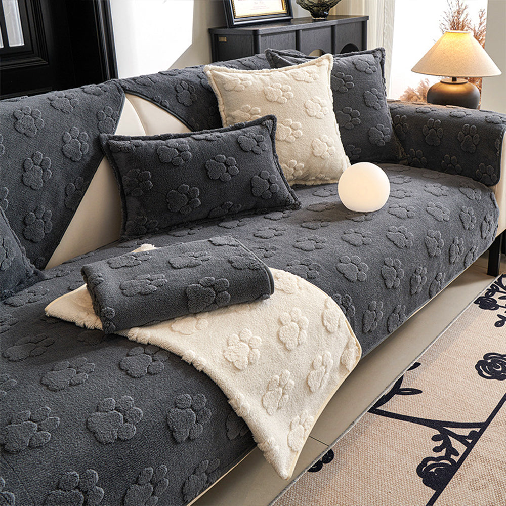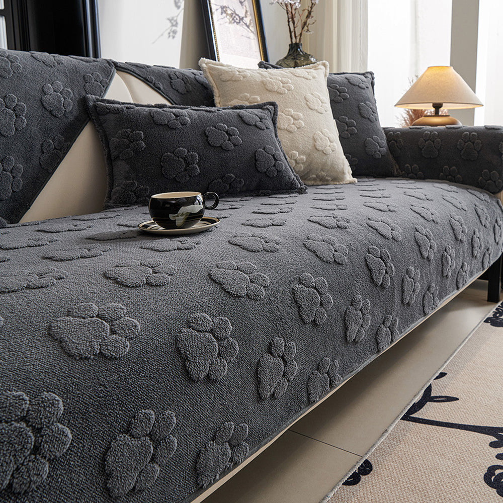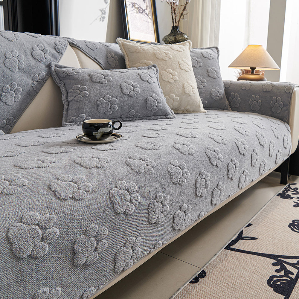 Gjør hjemmet ditt koseligere og mer kjæledyrvennlig med vårt Paw Plush sklisikker sofatrekk. Dette tykkede trekket med kort luv er designet med søte pregede potemønstre, og kombinerer stil, varme og praktisk anvendelighet – perfekt for høst- og vinterkomfort. Den myke, plysjlignende overflaten føles fløyelsmyk å ta på samtidig som den beskytter mot pels, riper og daglig slitasje. Den er laget med en sikker, sklisikker bakside, og holder seg godt på plass selv med aktive kjæledyr eller barn. Det lekne, men elegante designet passer perfekt inn i moderne, minimalistiske eller koselige interiører.