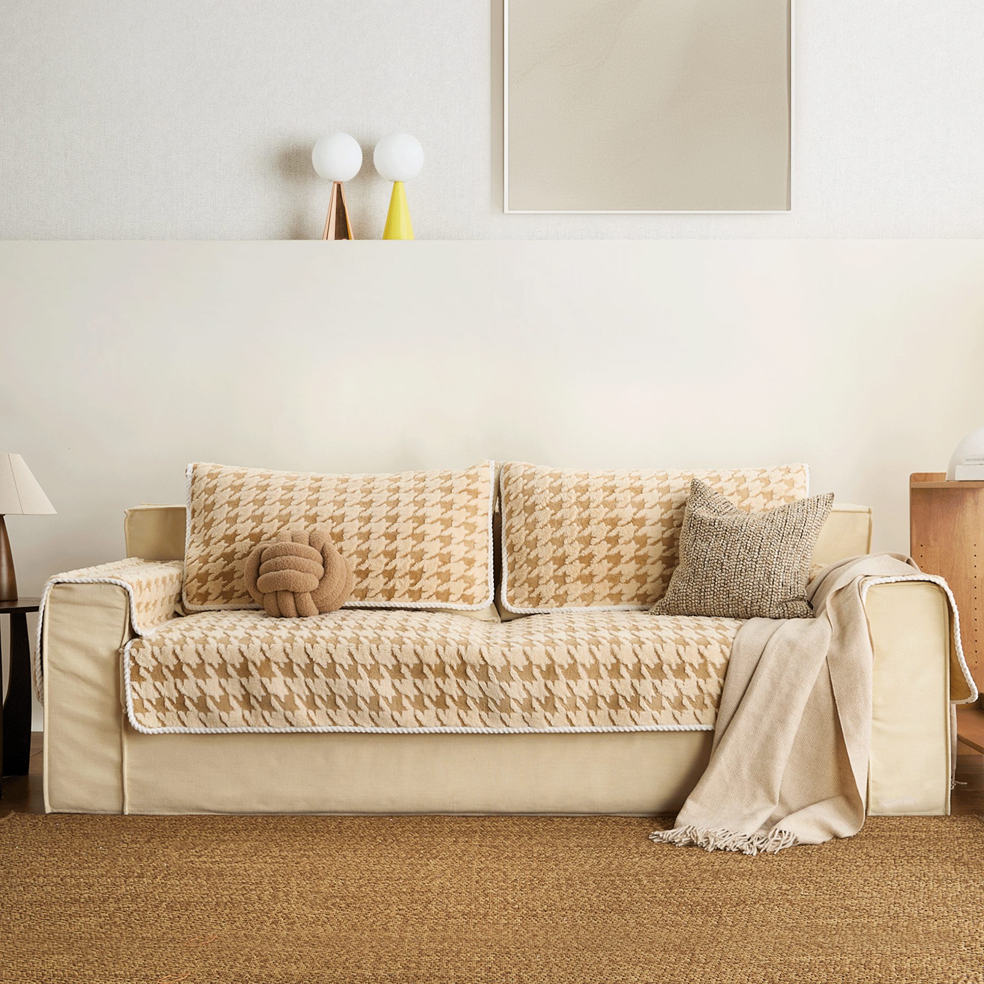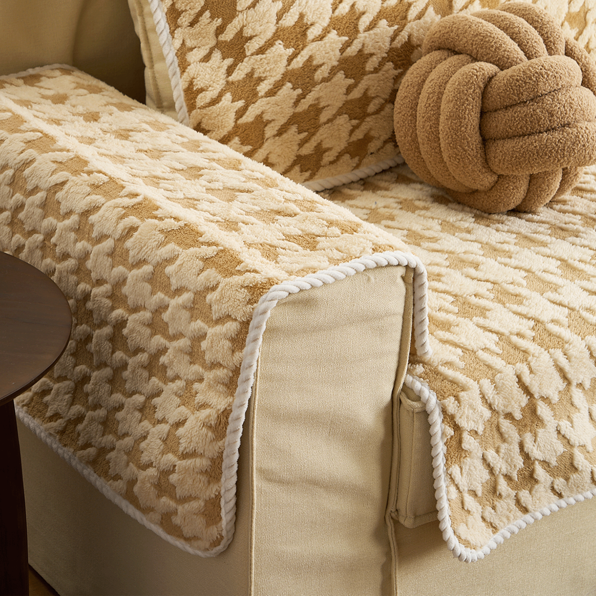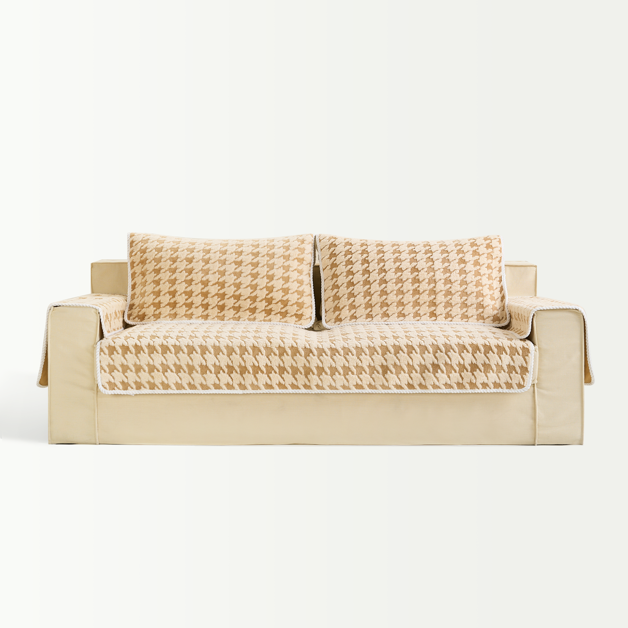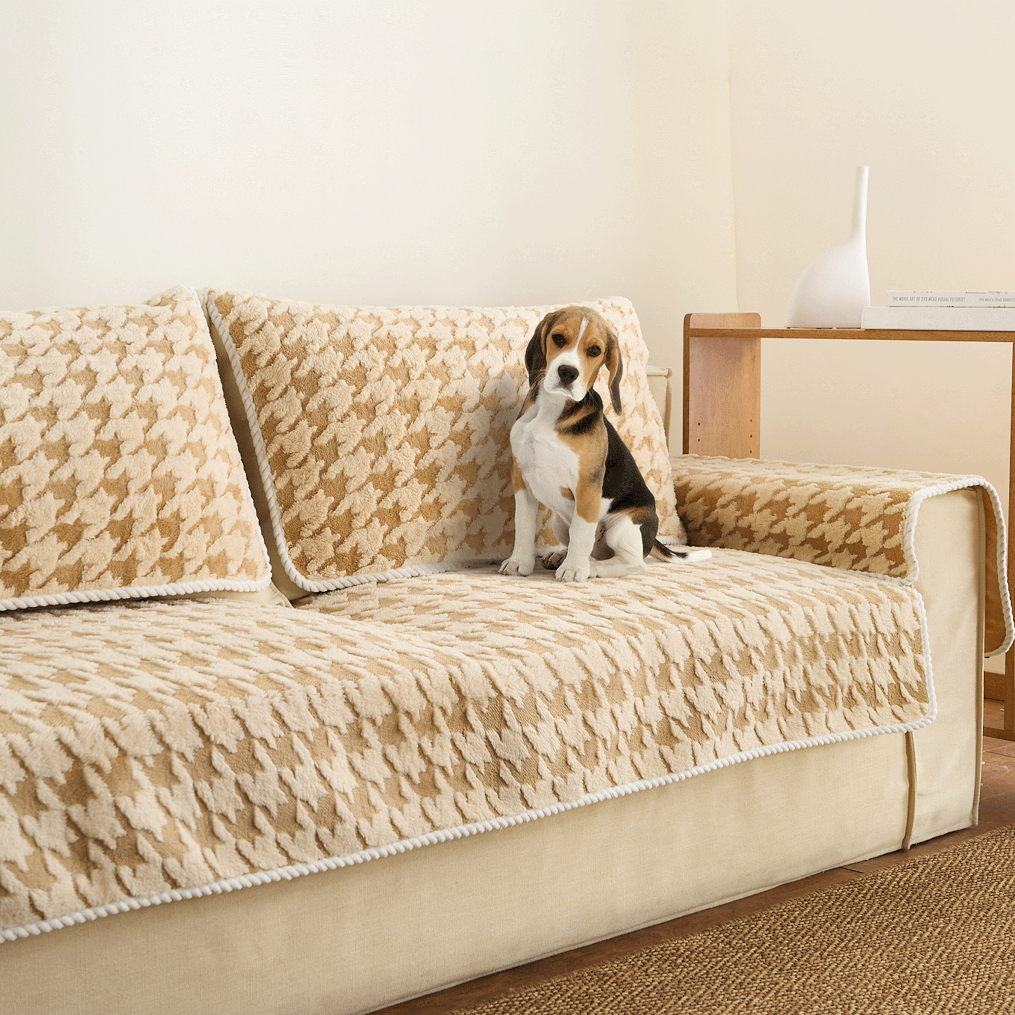Oppgrader sofaen din til et dyreparadis med vårt plysjtrekk med hundetannsmønster – et luksuriøst skjold mot søl og spenningen ved å bo med pelskledde familiemedlemmer. Dette trekket handler ikke bare om beskyttelse; det handler om å bringe deg og kjæledyret ditt nærmere hverandre i et plysjtrekk i sherpa-stoff som ber om magekos og late lurer. Laget av polyester sherpa, er det en kosemagnet for hunden, katten eller ethvert annet kjæledyr, og forvandler sofaen til det mest ettertraktede stedet i huset.