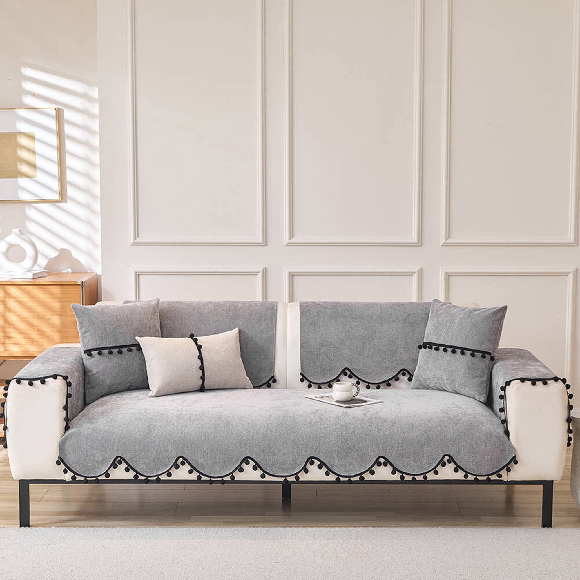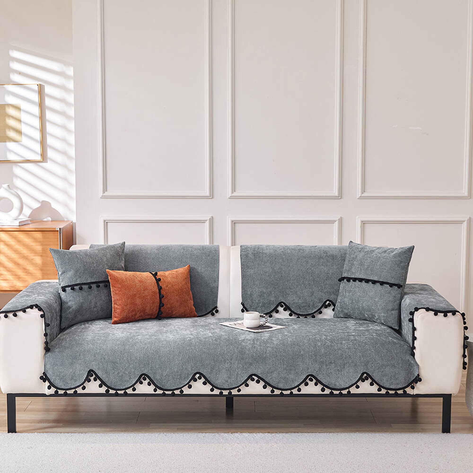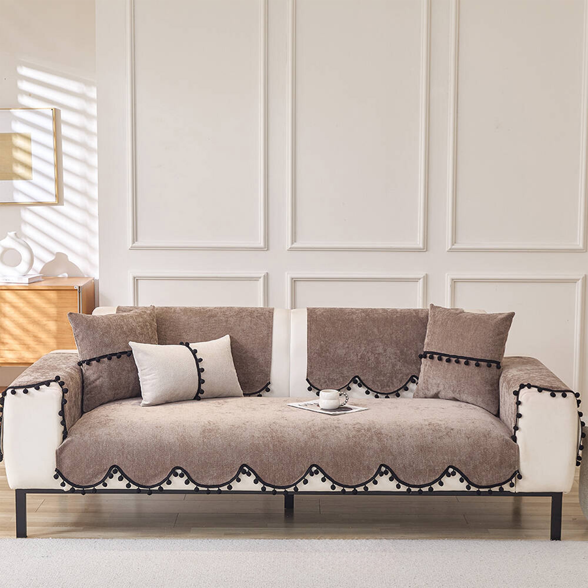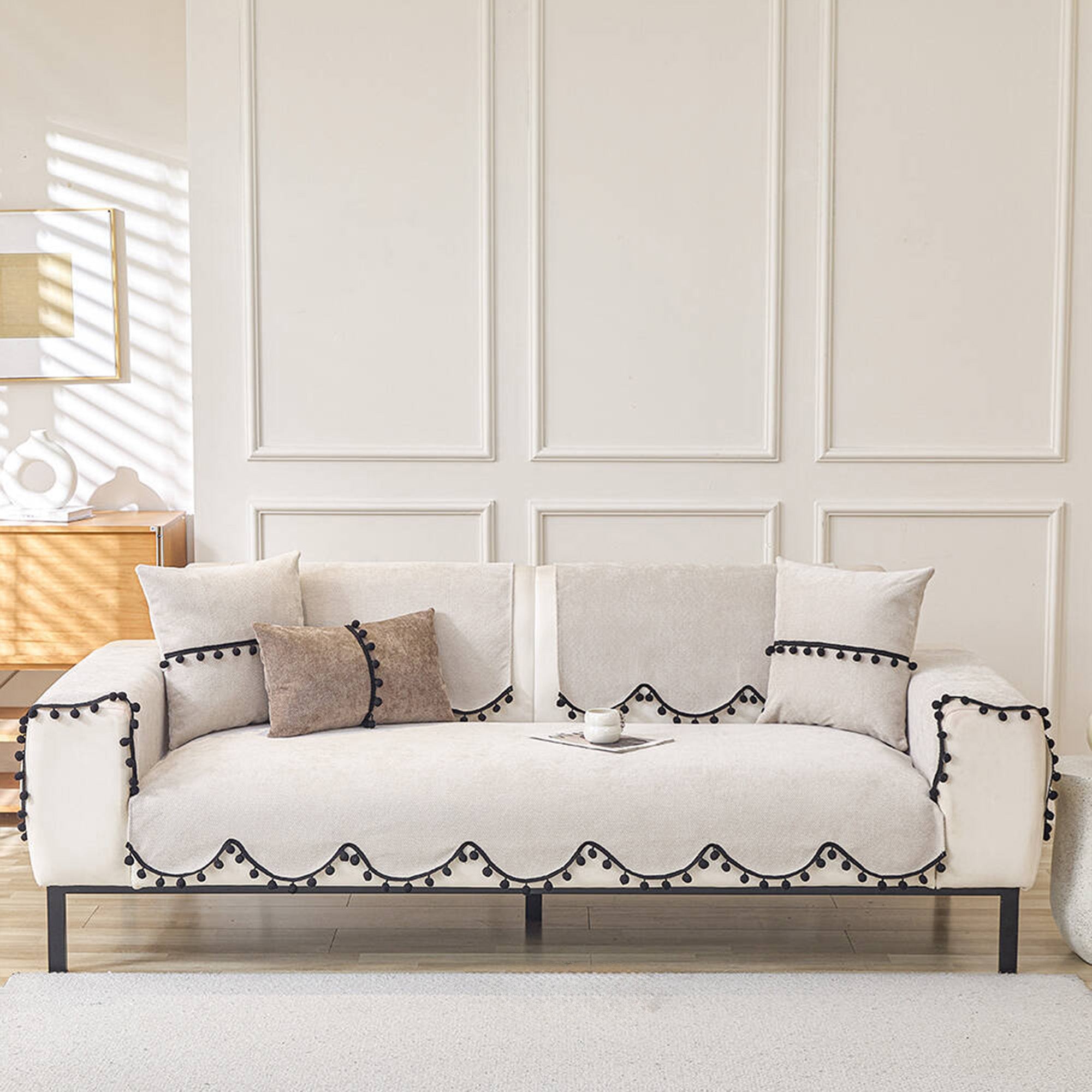 Løft sofaen din opp med dette trendy chenilletrekket, ferdig med en elegant kamskjellkant og svart pompongkant. Den tette, kortluvede chenilleen føles myk, men slitesterk, mens en sklisikker bakside bidrar til å holde hvert panel pent på plass. Den er designet for bruk året rundt og beskytter mot riper fra kjæledyr, pels, søl og hverdagsbruk – og gir en ren, minimal oppgradering på få minutter.