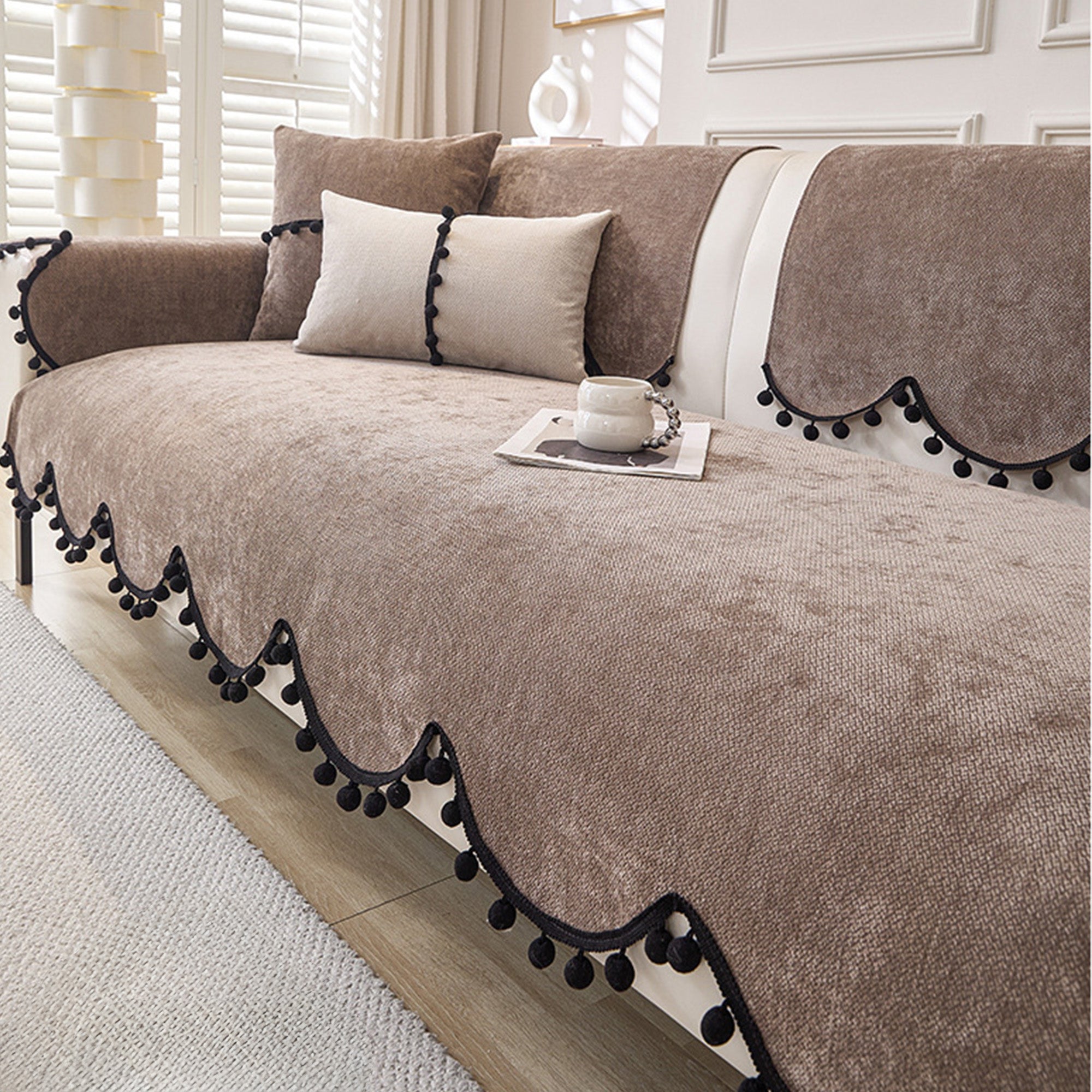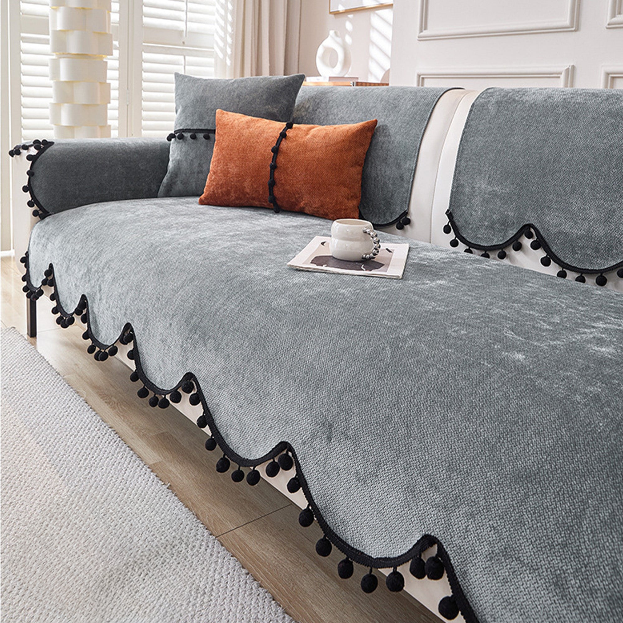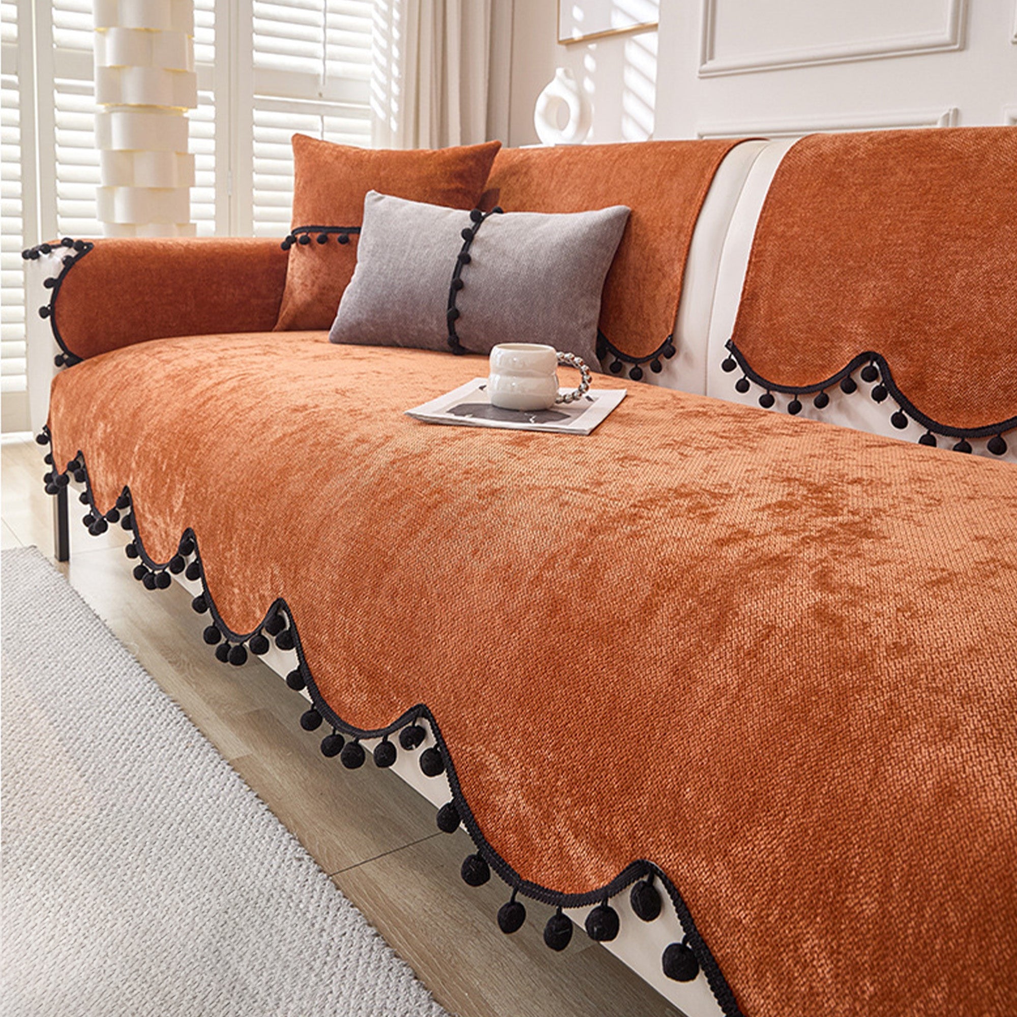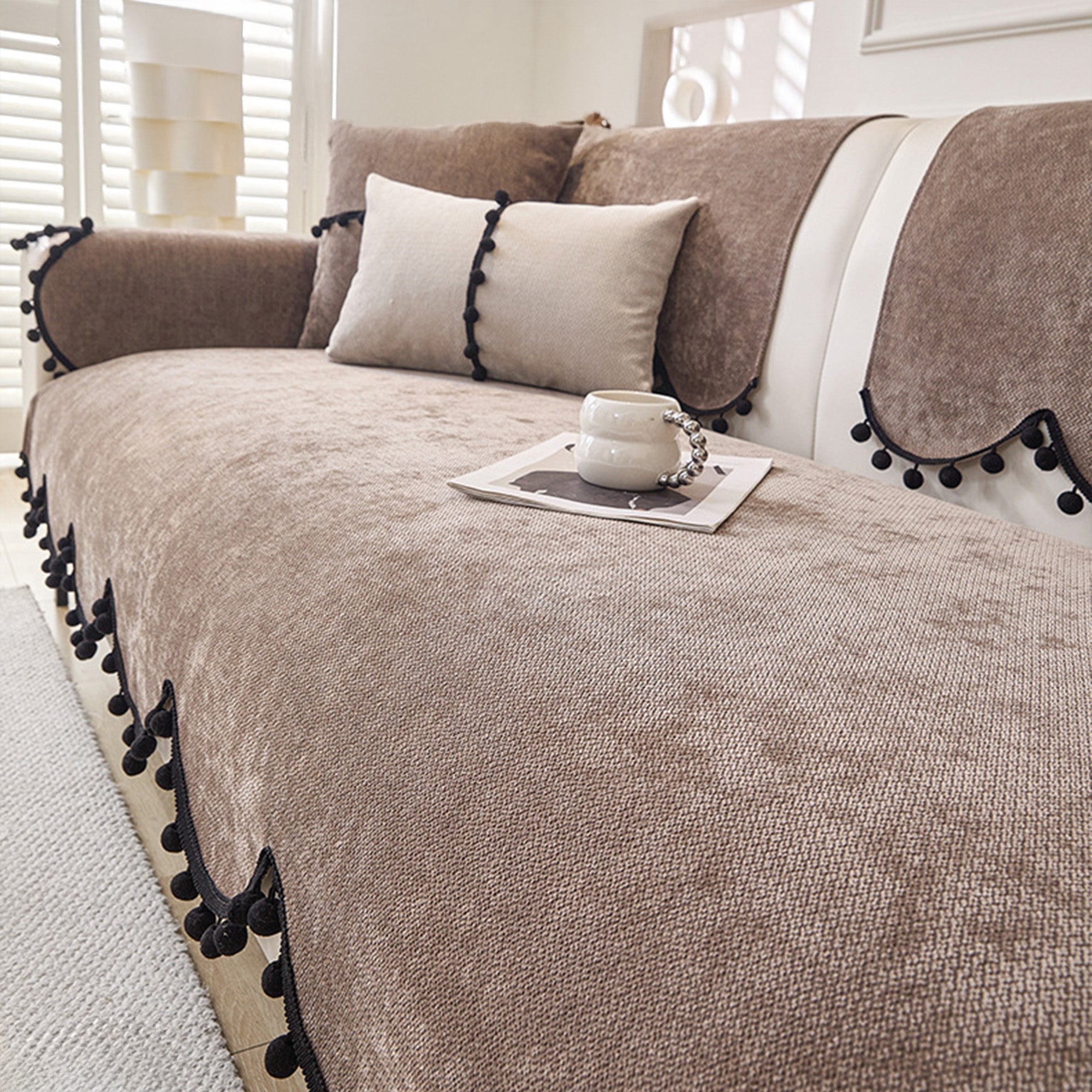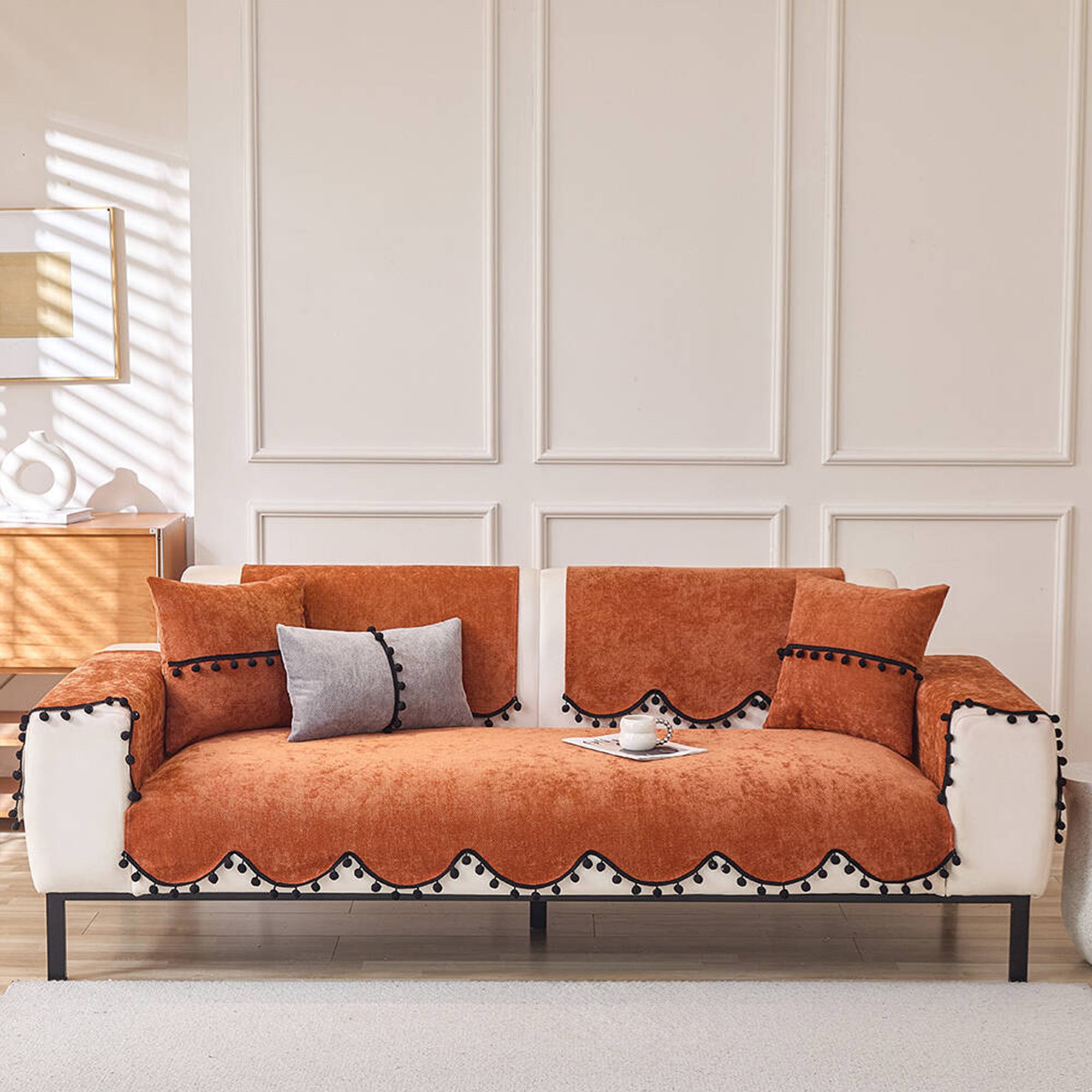 Løft sofaen din opp med dette trendy chenilletrekket, ferdig med en elegant kamskjellkant og svart pompongkant. Den tette, kortluvede chenilleen føles myk, men slitesterk, mens en sklisikker bakside bidrar til å holde hvert panel pent på plass. Den er designet for bruk året rundt og beskytter mot riper fra kjæledyr, pels, søl og hverdagsbruk – og gir en ren, minimal oppgradering på få minutter.