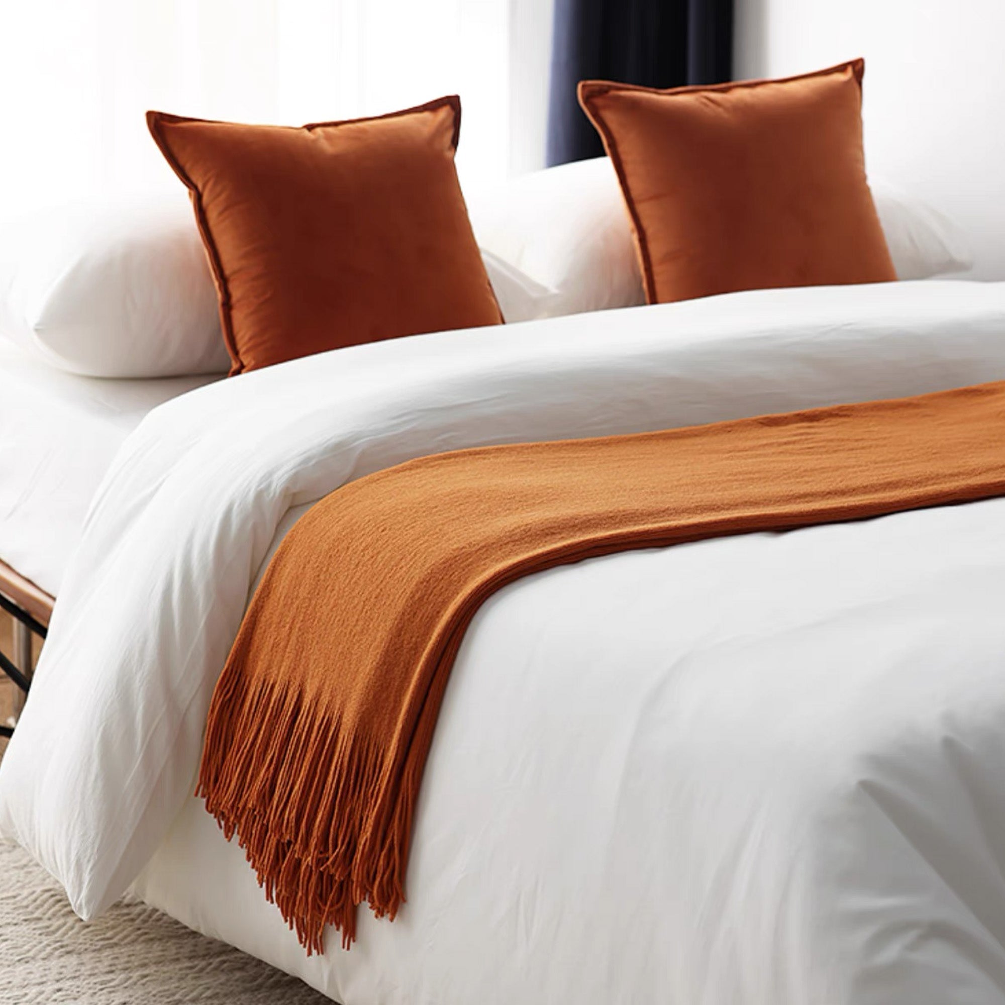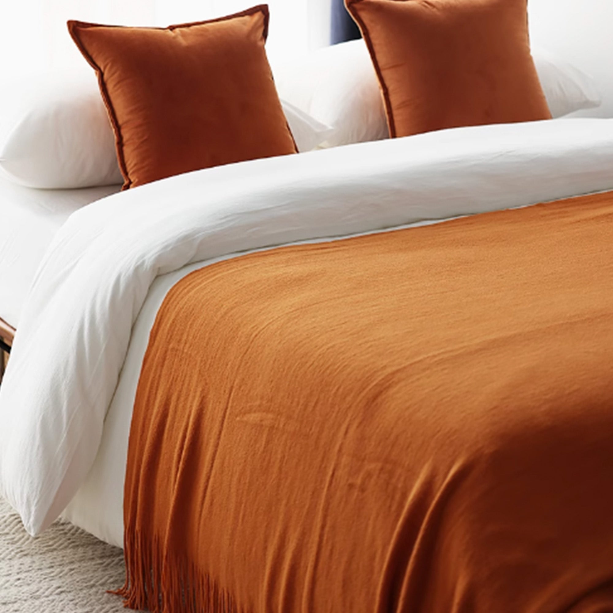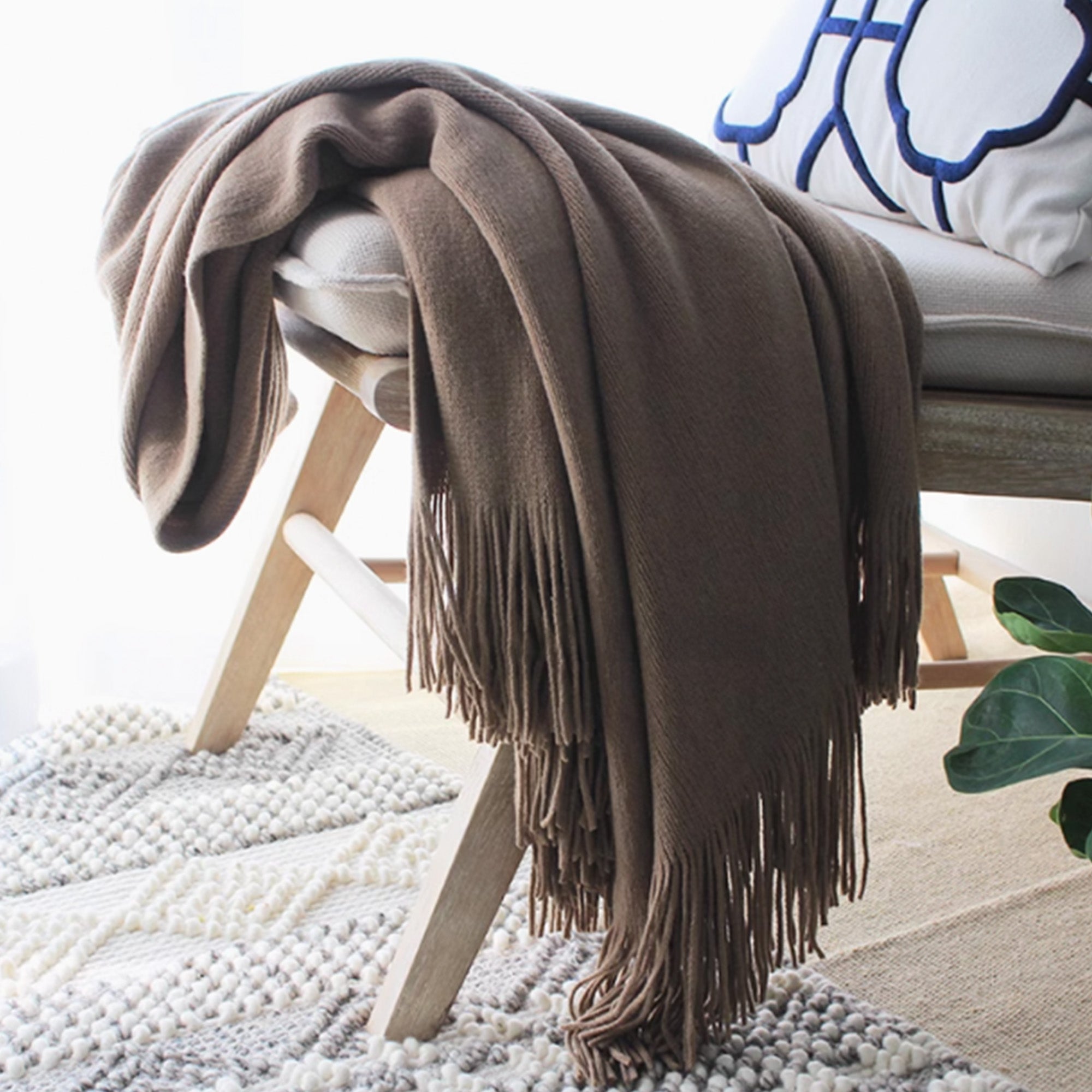 Tilfør et snev av jordnær varme til stuen din med dette luksuriøse teppet med frynser i jordfarge. Den rike, varme brunfargen og de myke frynsedetaljene skaper et innbydende og koselig utseende som passer perfekt til ethvert rom. Laget av et mykt stoff av høy kvalitet, er dette teppet ideelt for å drapere over stoler, sofaer eller senger, og gir både tekstur og komfort til innredningen din.