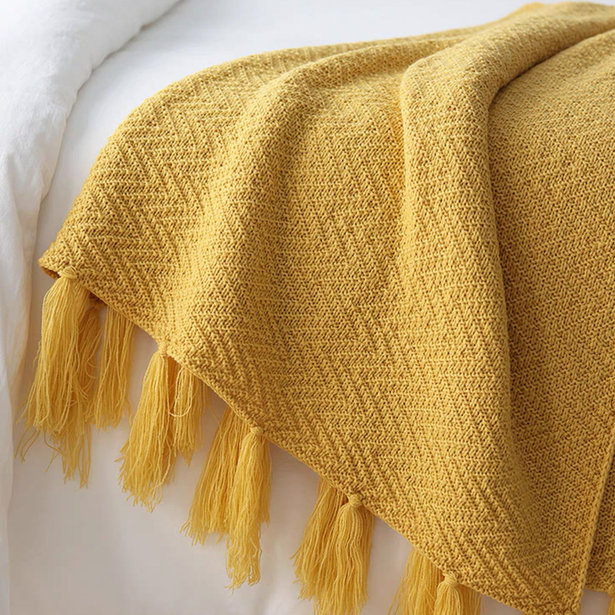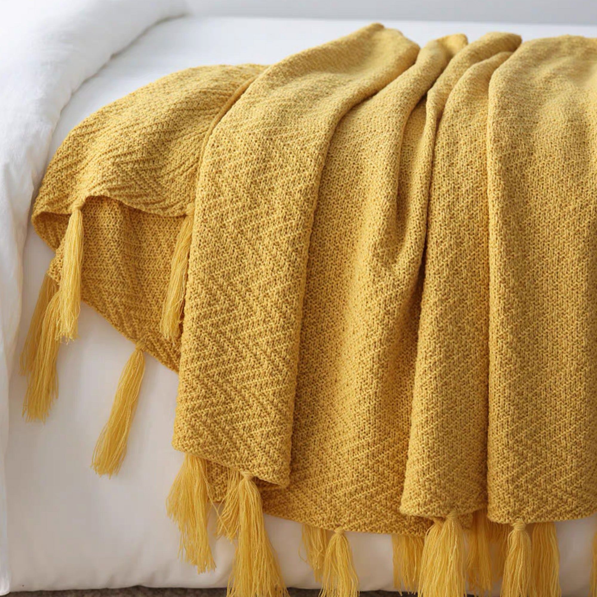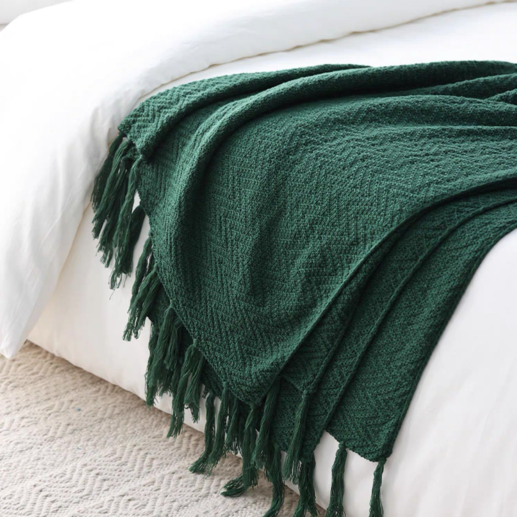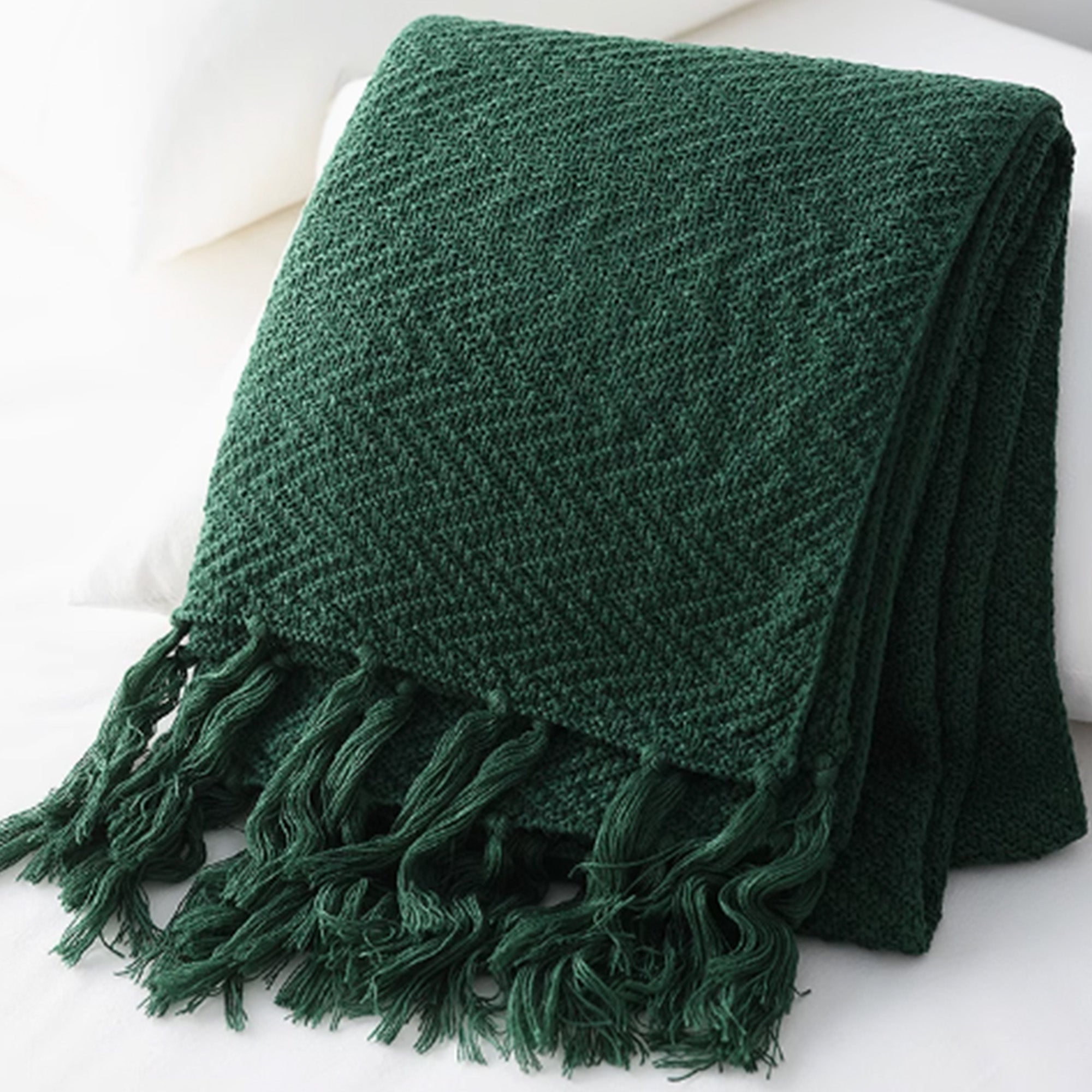 Omfavn varmen og elegansen i skandinavisk design med vårt nordiske strikkede kasteteppe. Dette rikt teksturerte, dypblå teppet har et klassisk fiskebensmønster og er utsmykket med lange, flagrende dusker, noe som gir et koselig og stilig lag til ethvert rom. Perfekt for å pakke seg inn i på kjølige kvelder eller som et vakkert dekorativt element for sofaer, senger eller lesekroker.