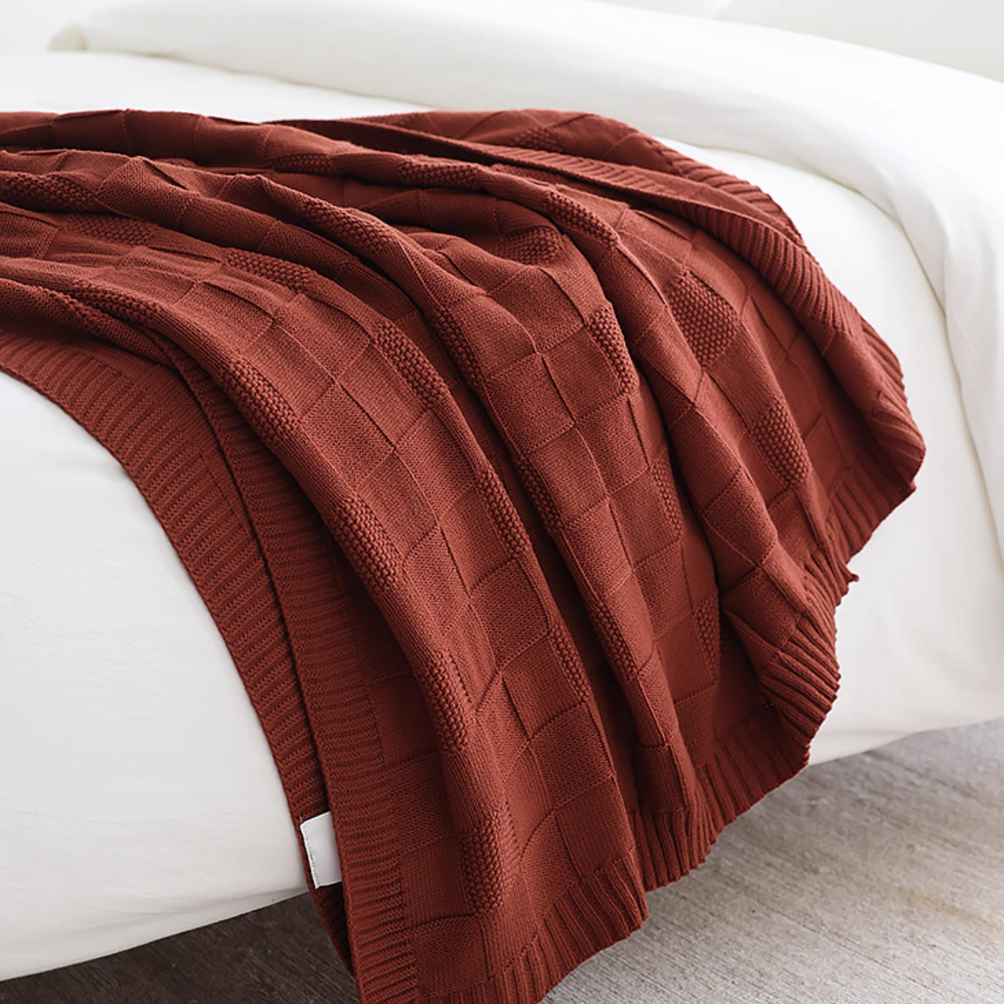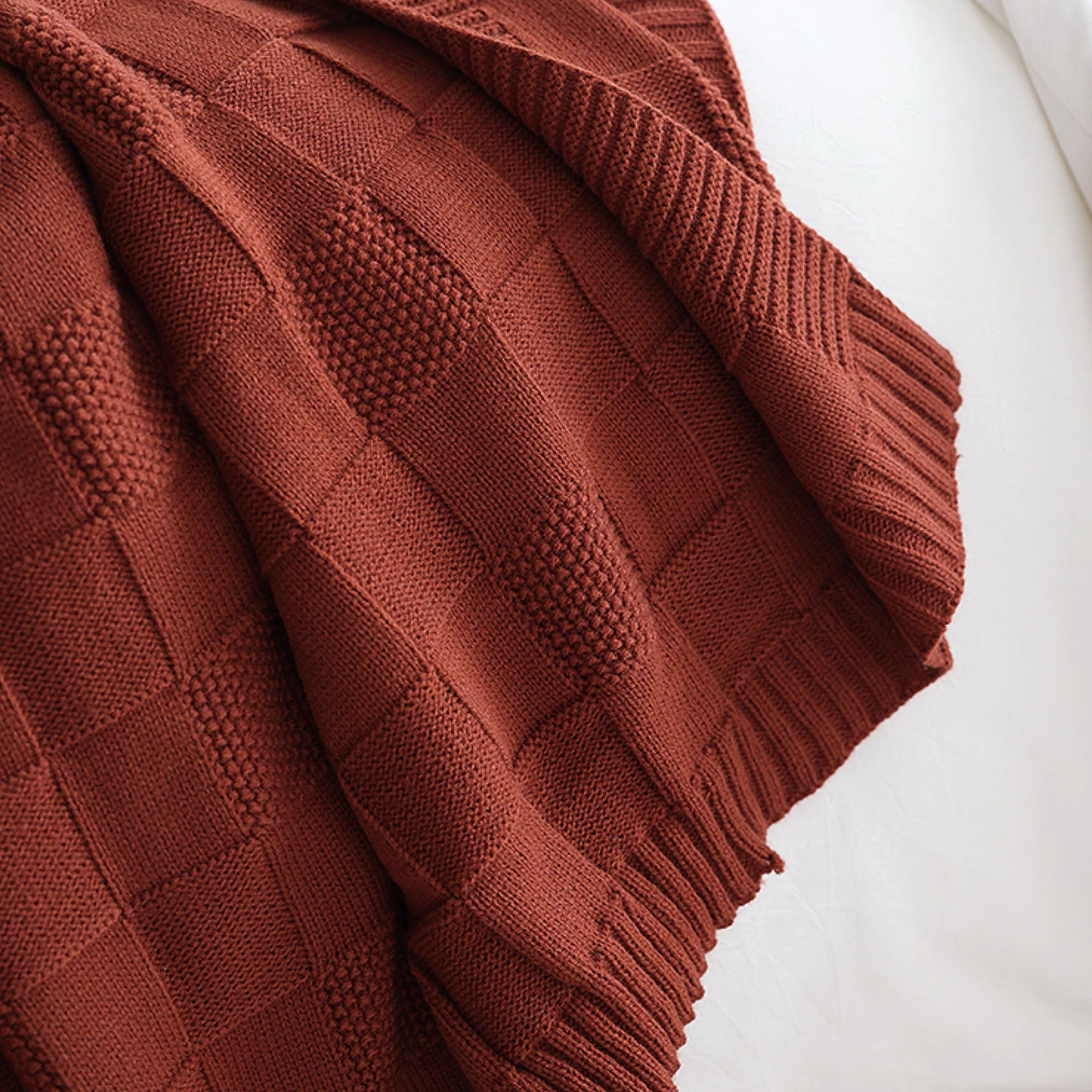Tilfør et snev av varme og stil til hjemmet ditt med vårt teksturerte gridstrikkpledd. Dette pleddet er designet med et særegent gridmønster og laget av et koselig strikkemateriale av høy kvalitet, og kombinerer komfort med en moderne estetikk. Den dype, rike fargen gir et sofistikert preg til ethvert rom, noe som gjør det til et perfekt tillegg til sofaen, sengen eller lesestolen.