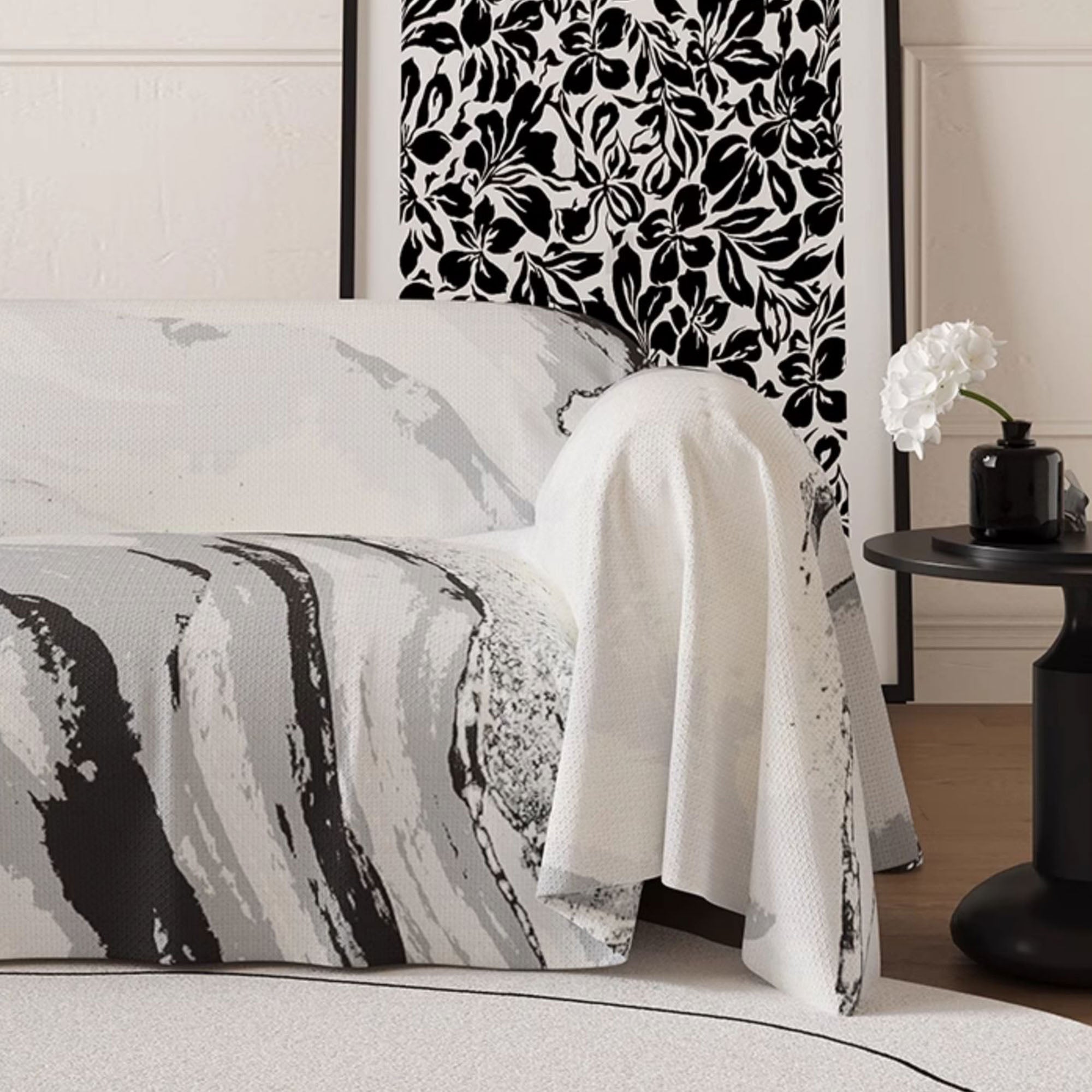 •Kunstnerisk marmormønster bringer bevegelse og raffinement til rommet ditt