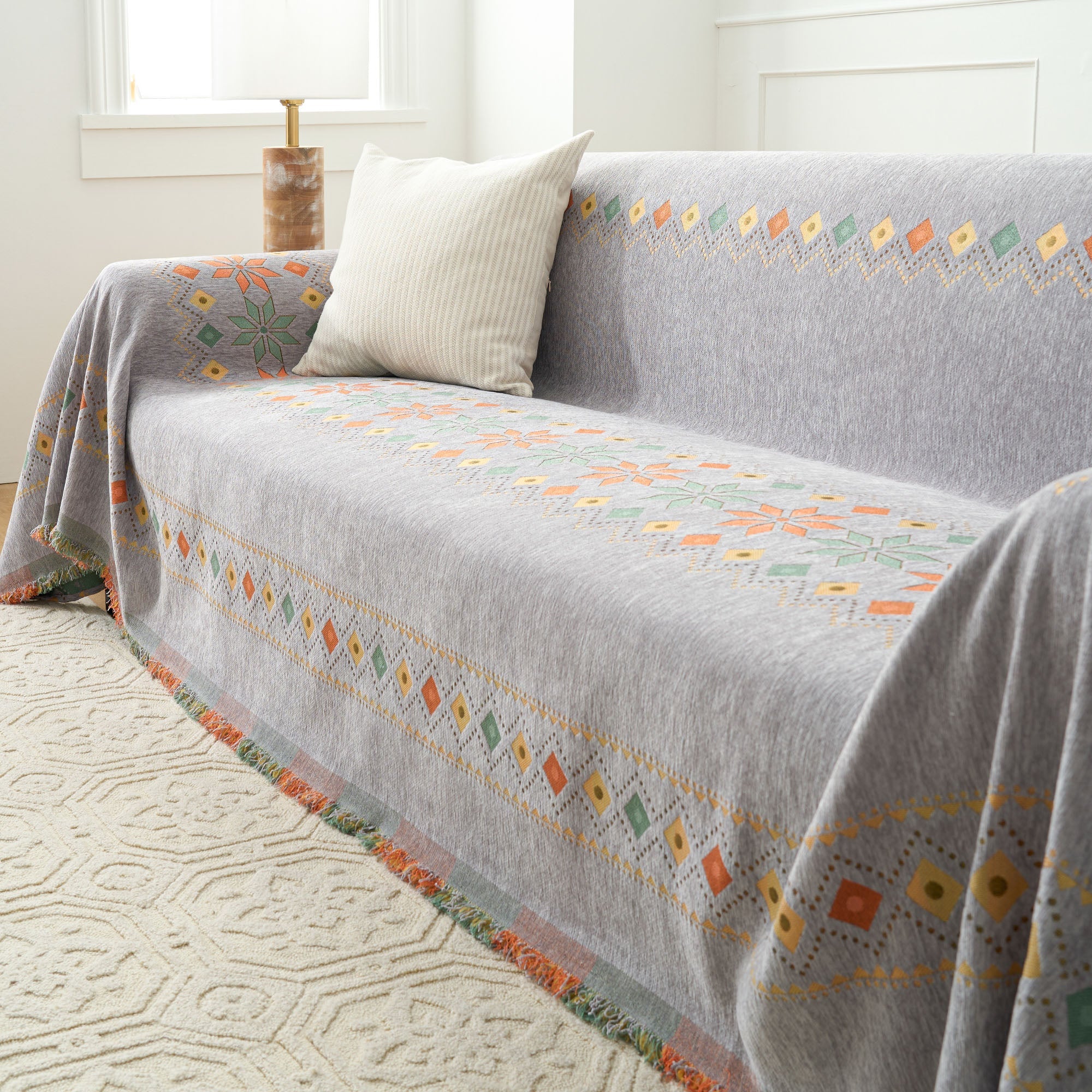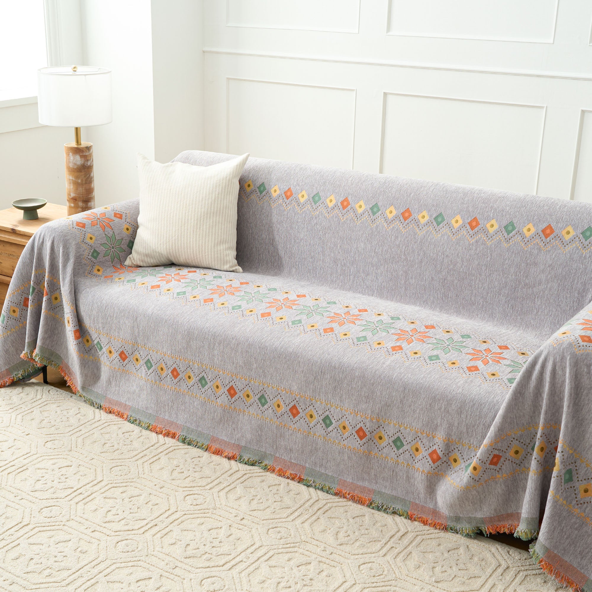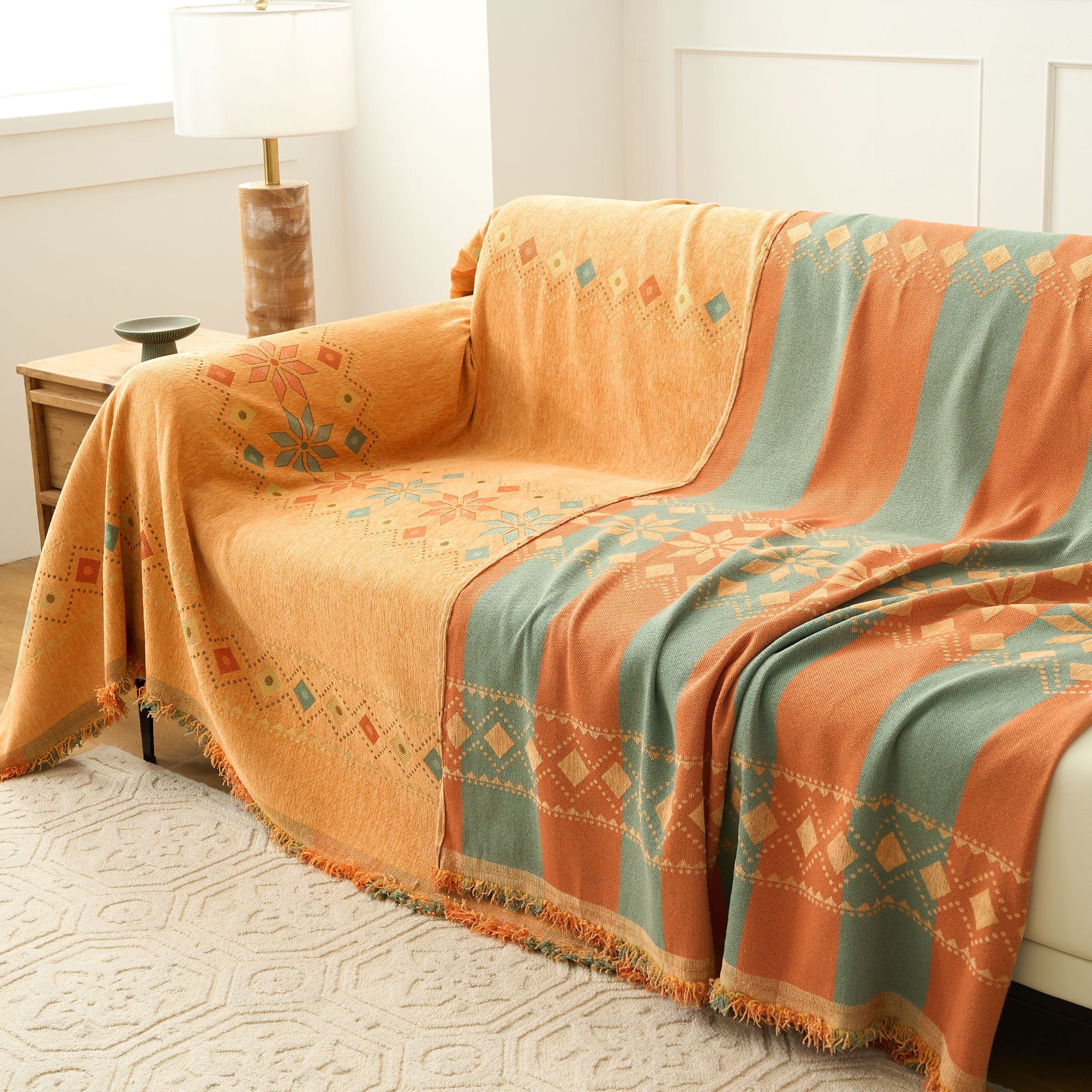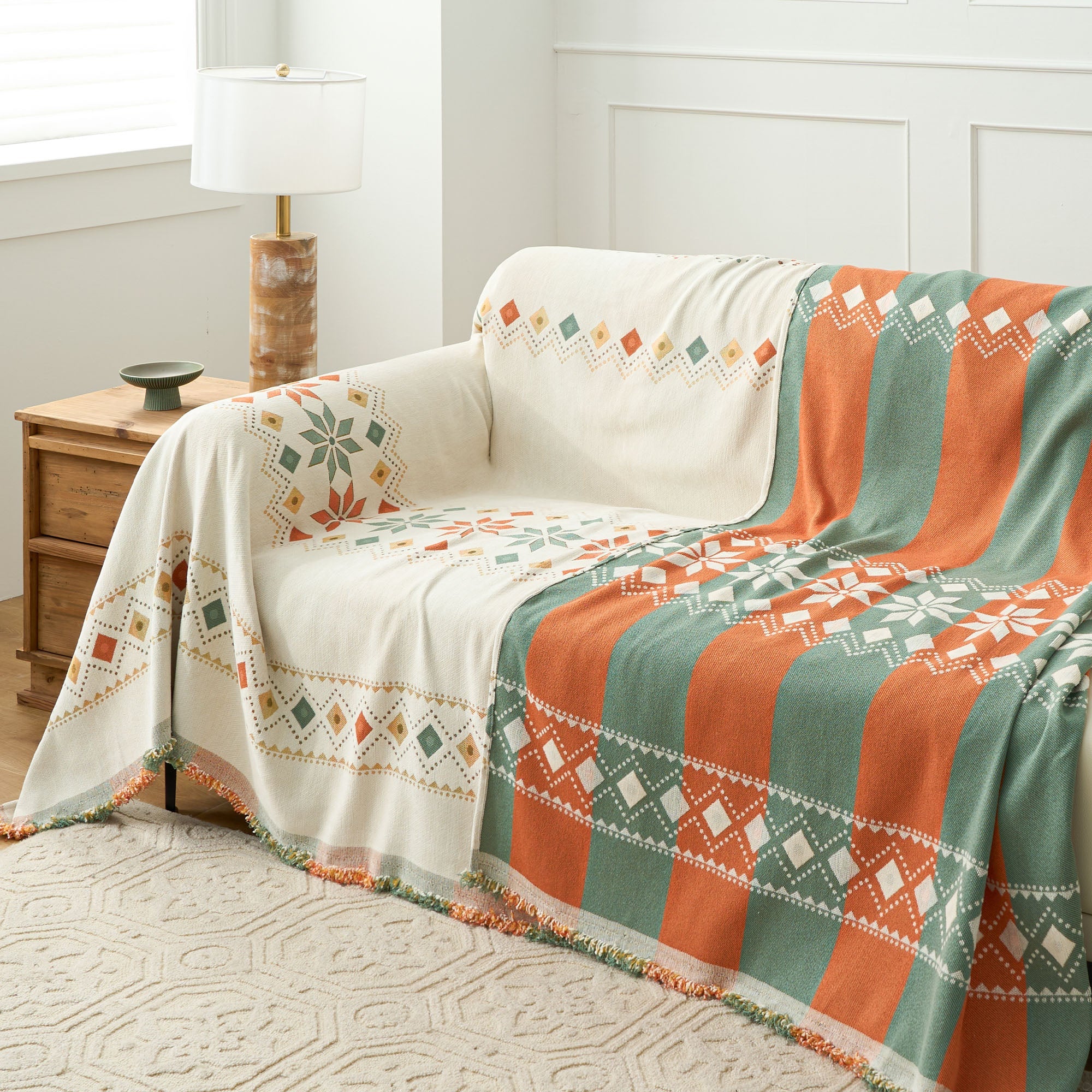 •Multifunksjonell bruk: Bruk den som sofatrekk, dekorativt pledd eller til og med som et lett sengeteppe for allsidig funksjonalitet.