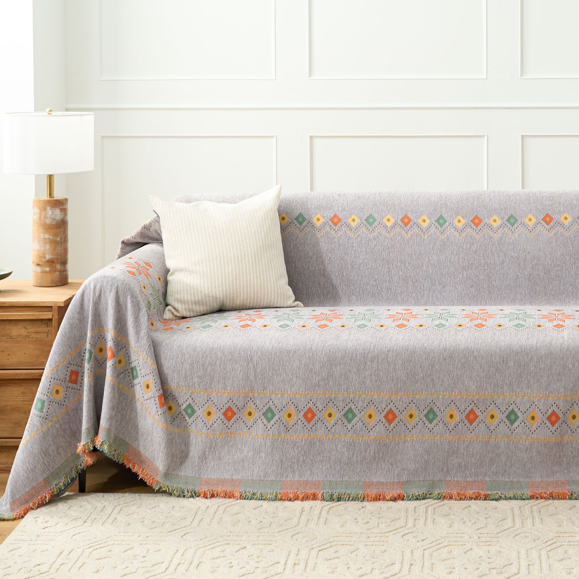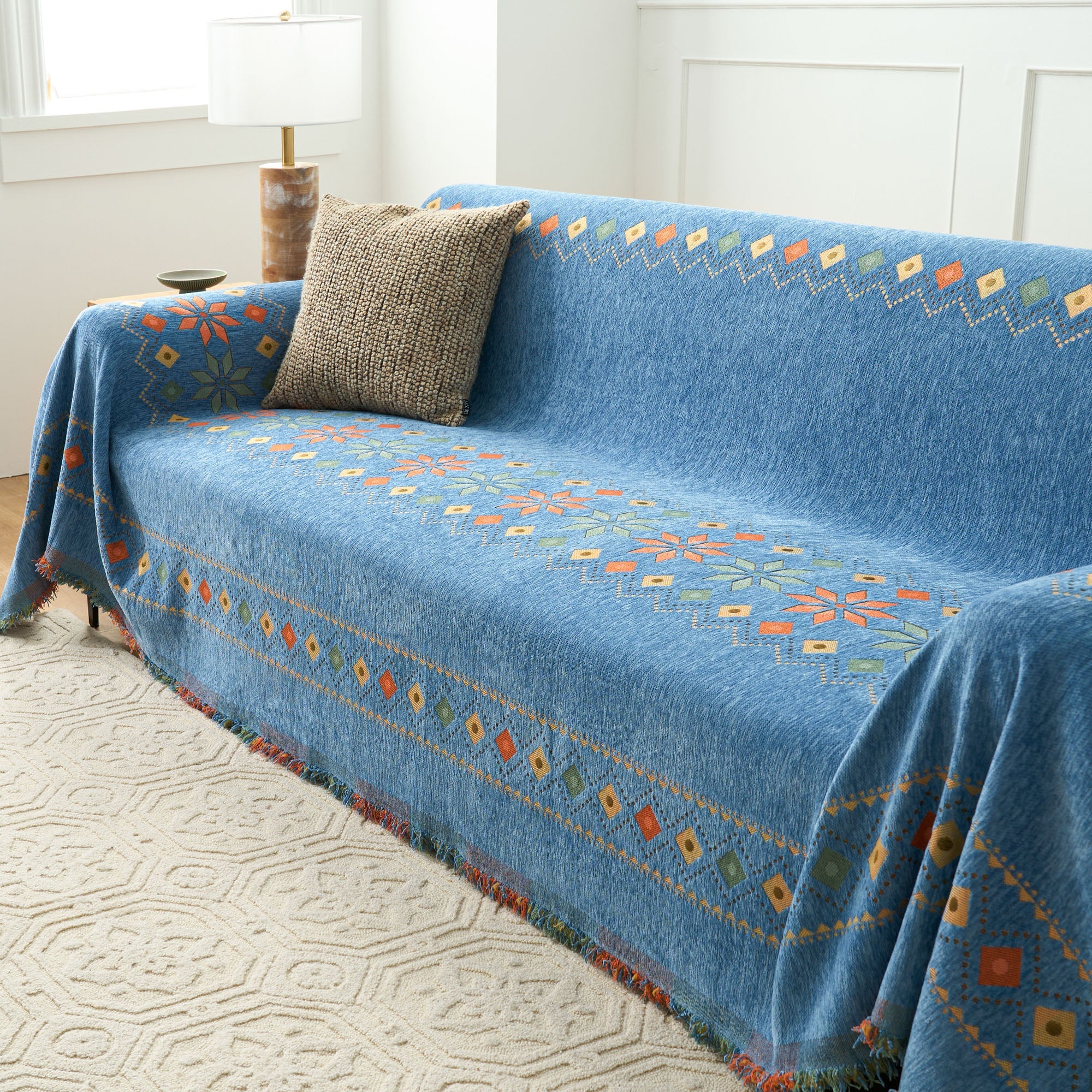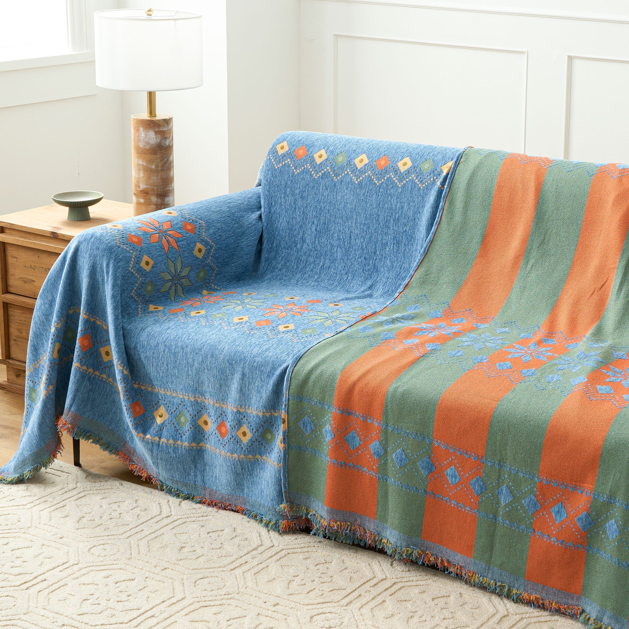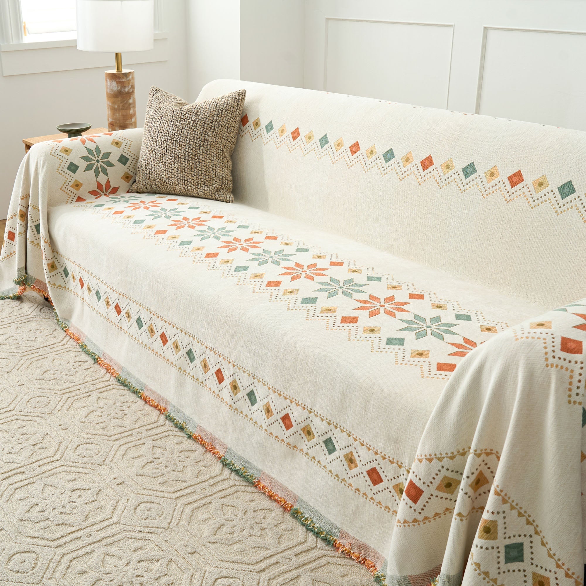 •Multifunksjonell bruk: Bruk den som sofatrekk, dekorativt pledd eller til og med som et lett sengeteppe for allsidig funksjonalitet.