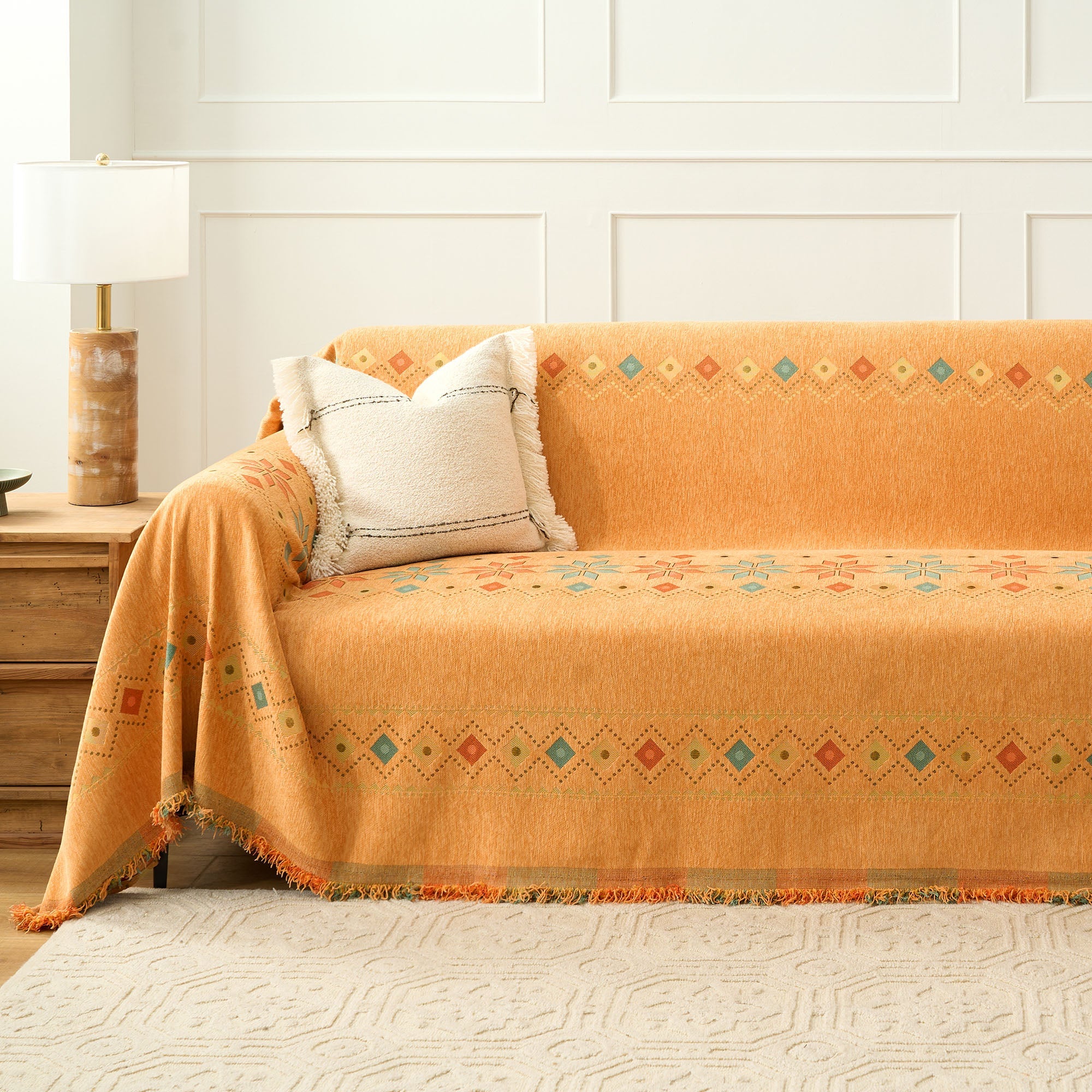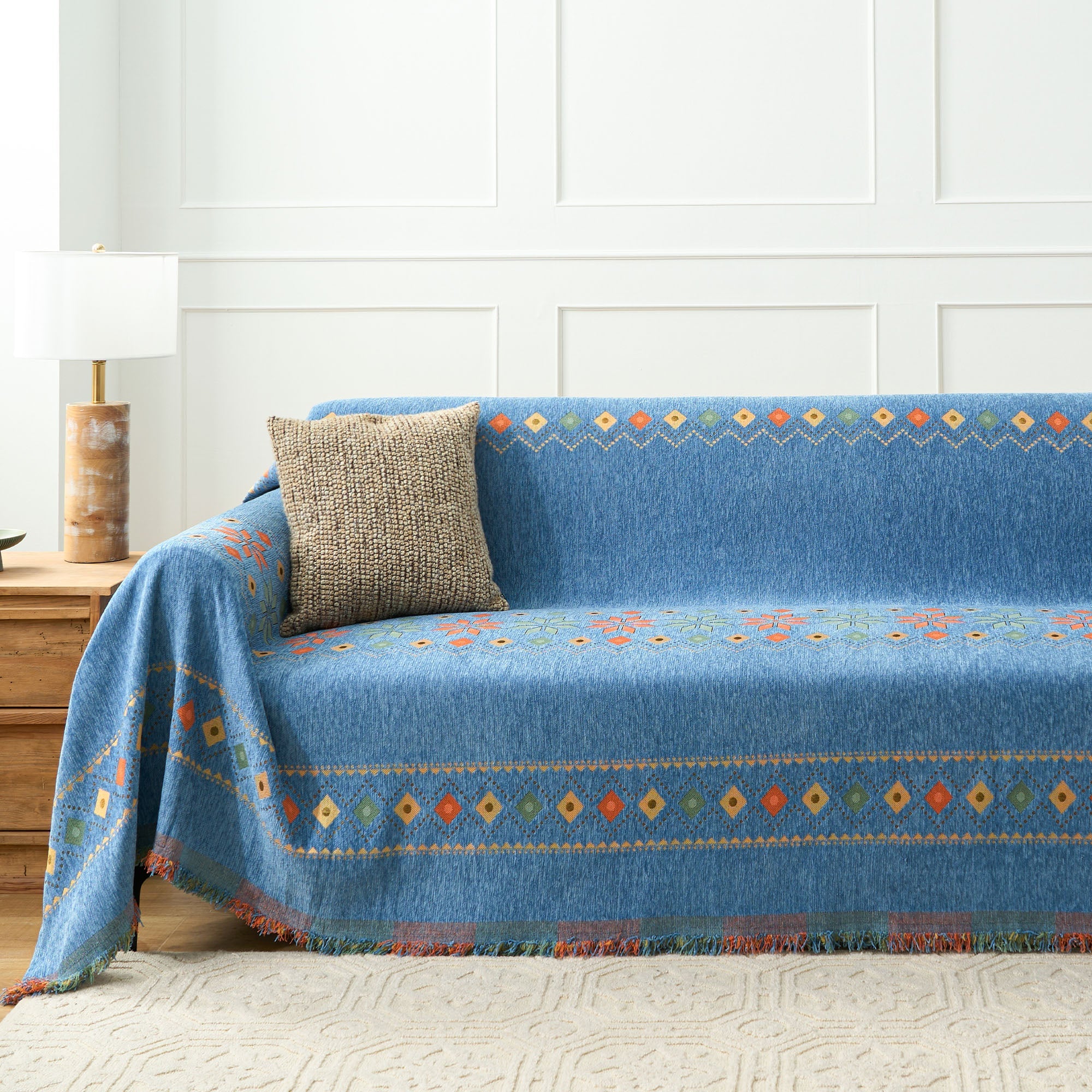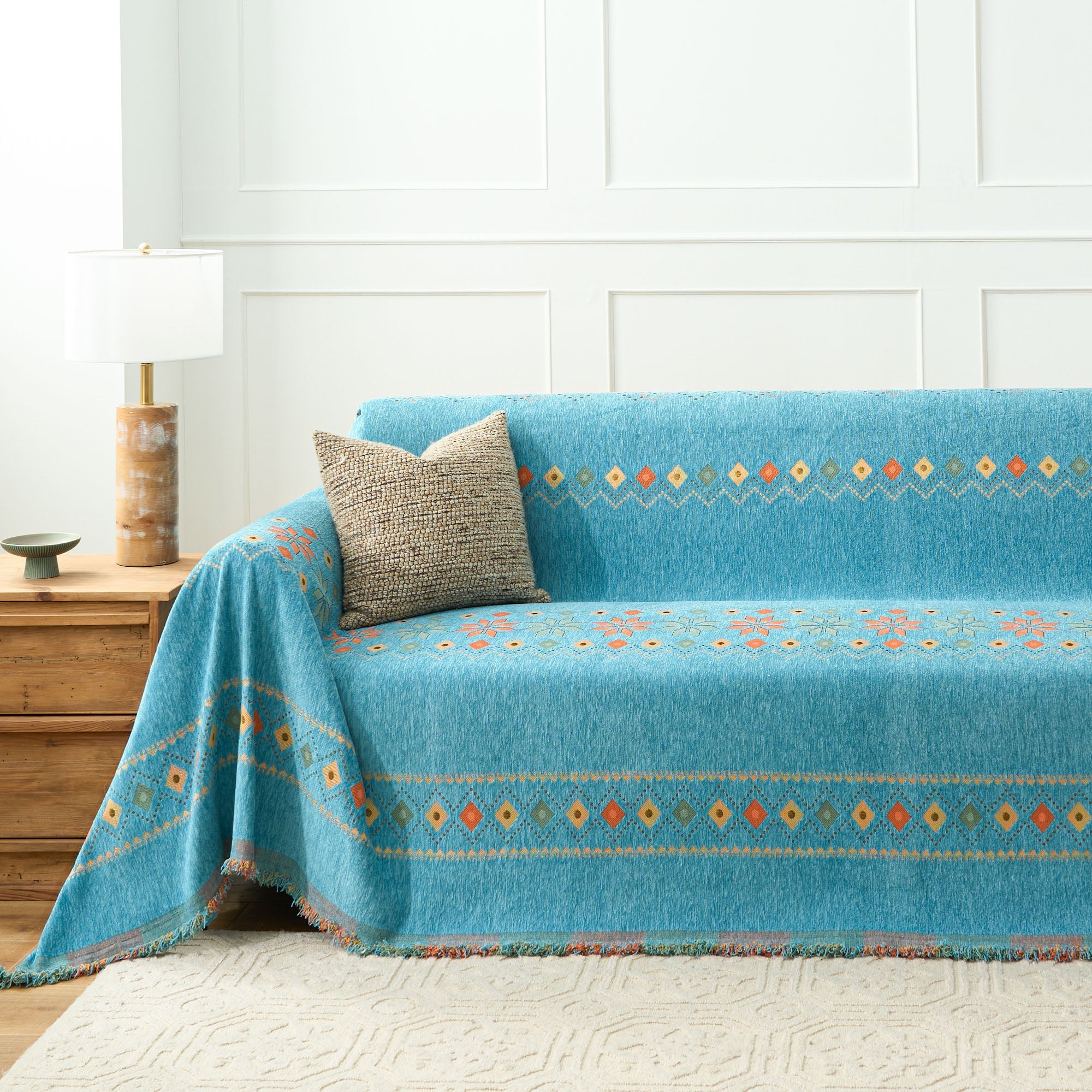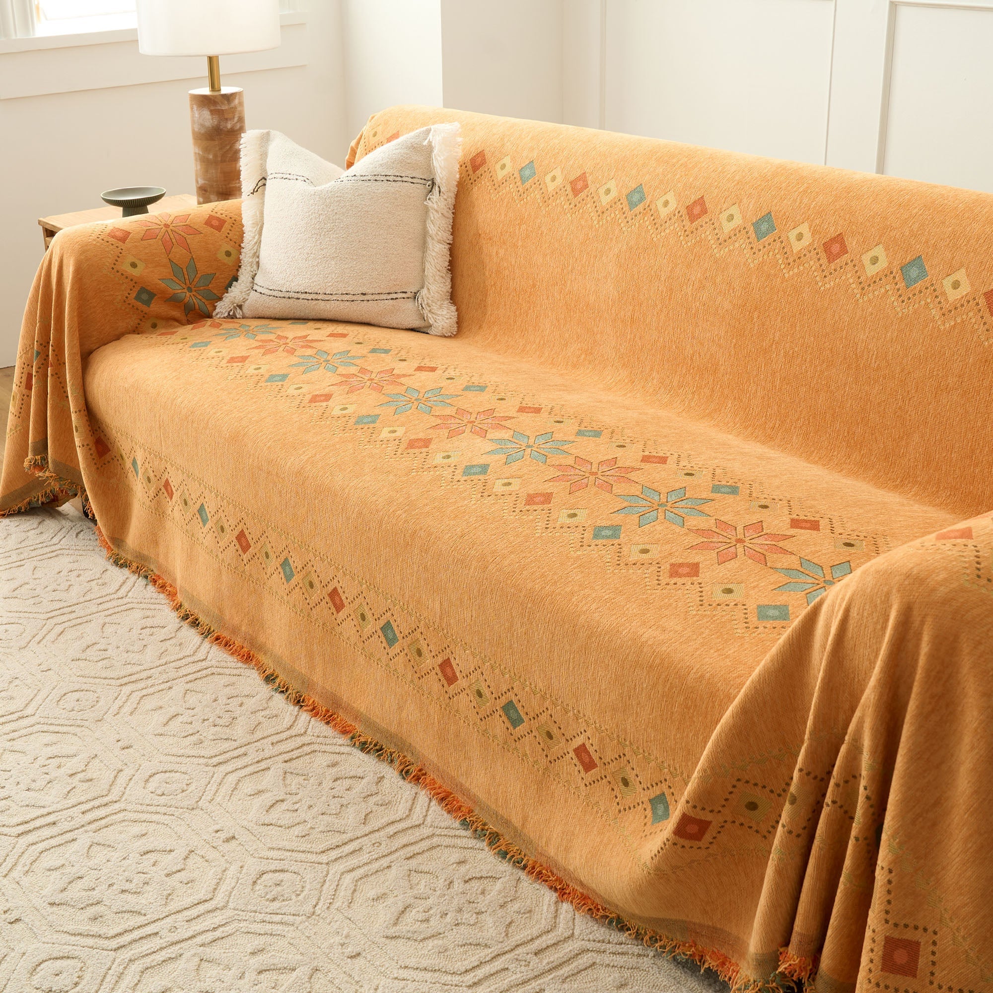 •Multifunksjonell bruk: Bruk den som sofatrekk, dekorativt pledd eller til og med som et lett sengeteppe for allsidig funksjonalitet.