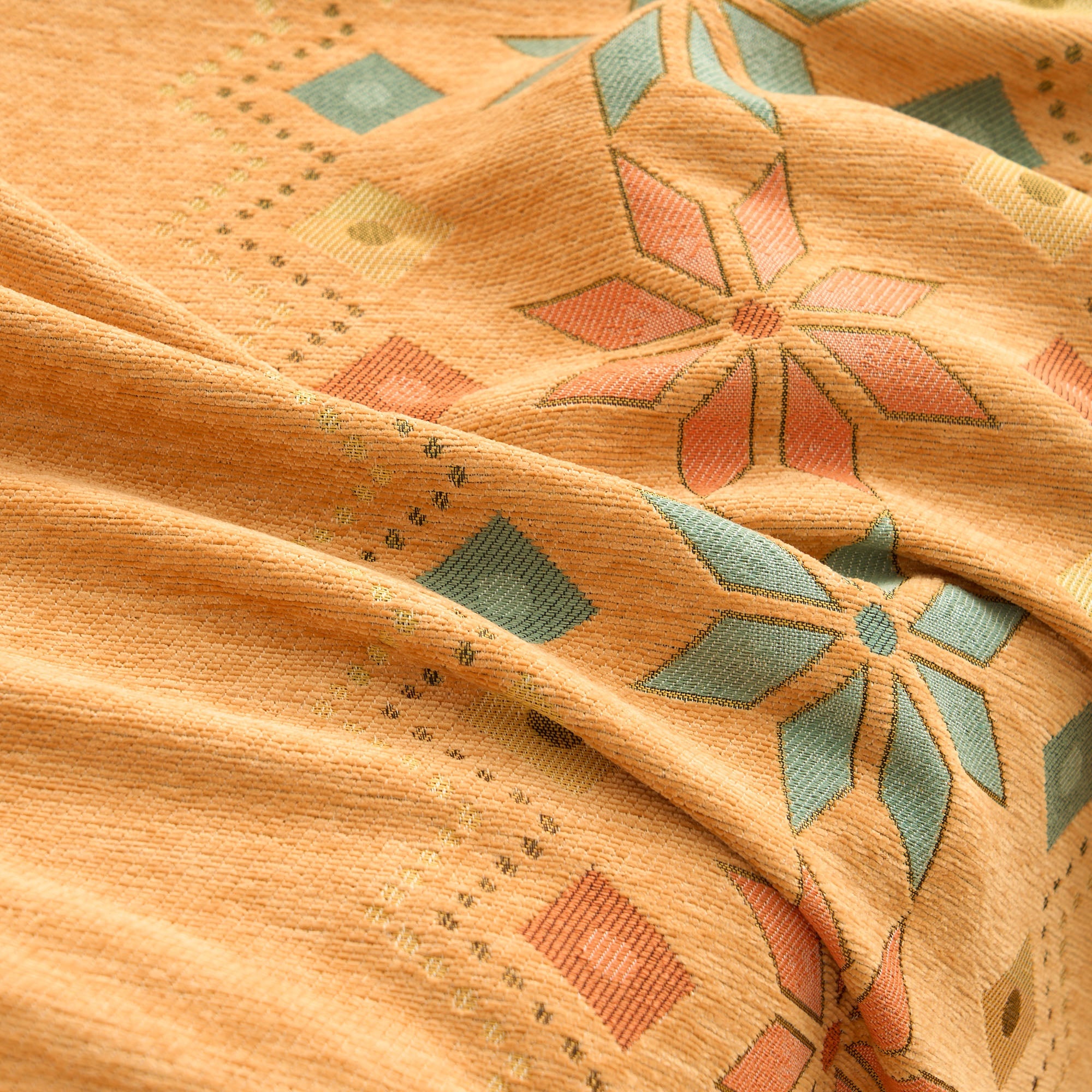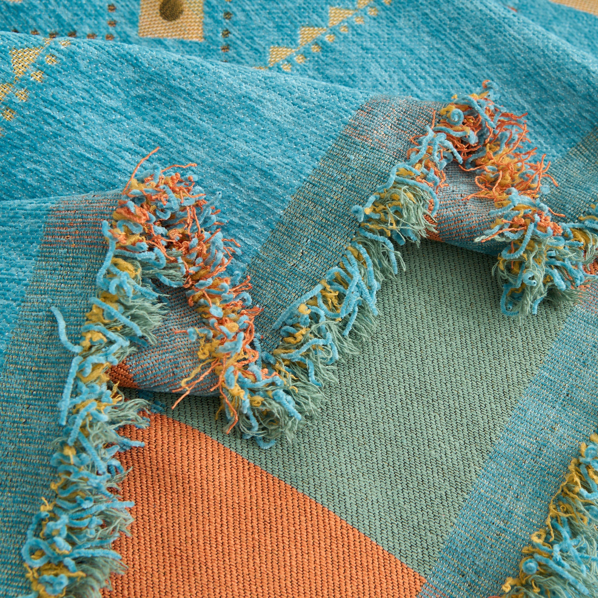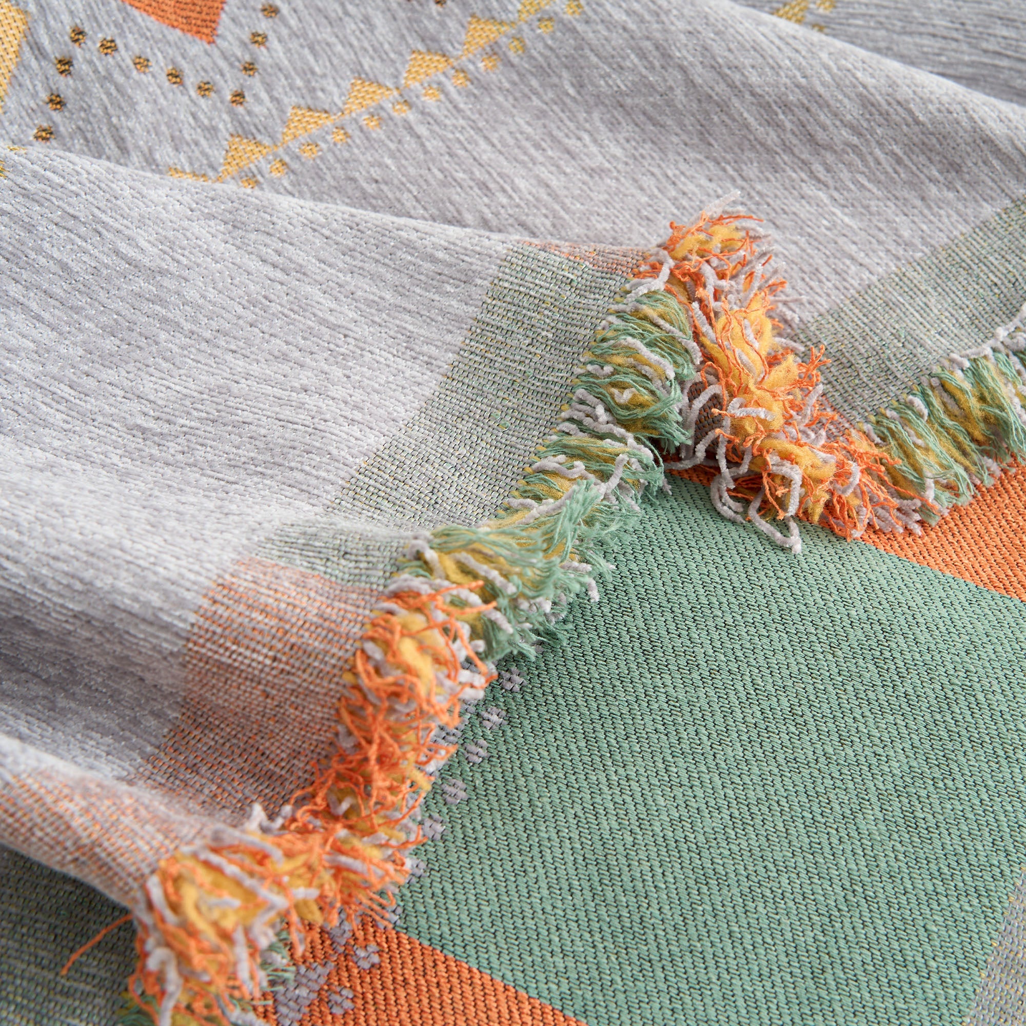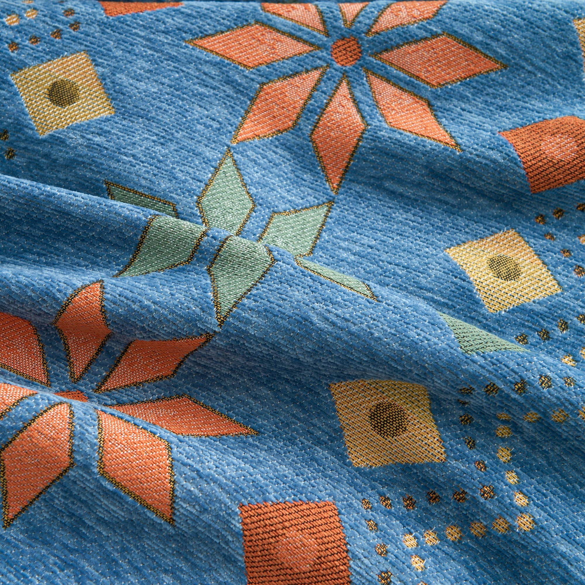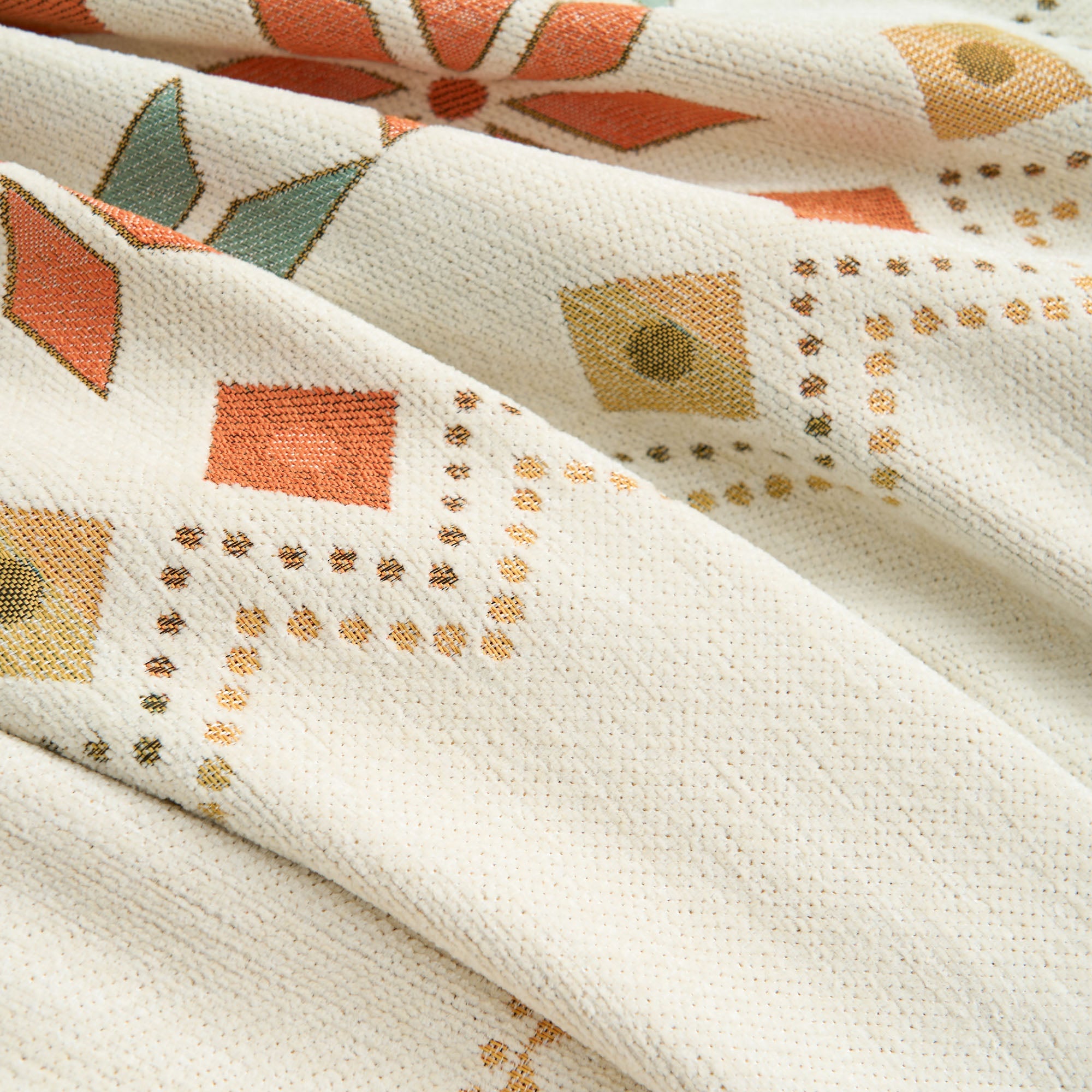 •Lys geometrisk design: Med et fargerikt nordisk-inspirert geometrisk mønster som løfter innredningen din med et trendy, kunstnerisk preg.