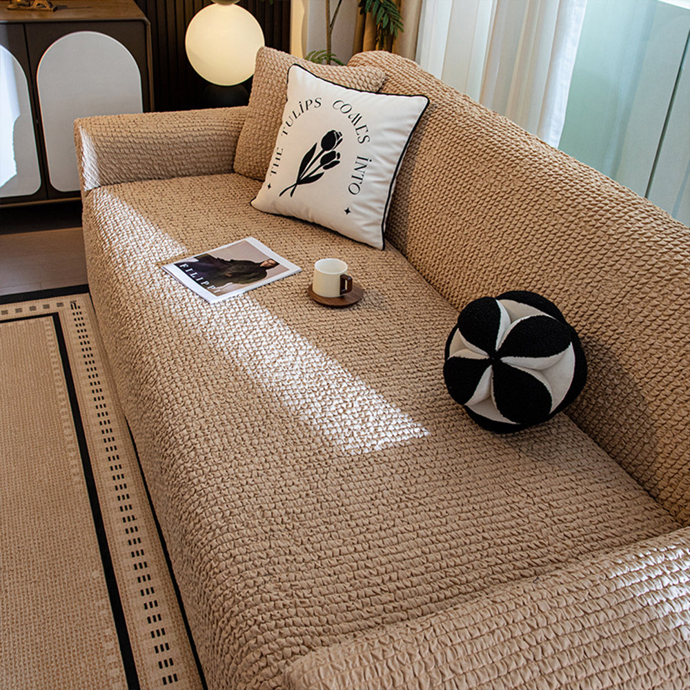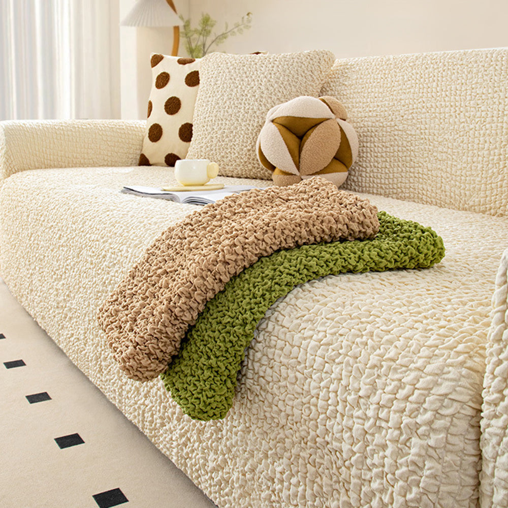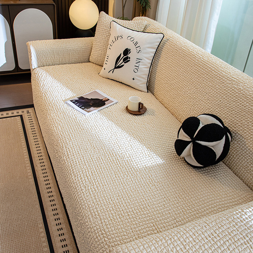 Oppgrader sofaen din med BubbleSoft Stretch Full-Encasing Sofa Slipcover – en perfekt blanding av koselig tekstur, moderne design og fullstendig beskyttelse. Laget av ultra-elastisk boblestrikket stoff, former det seg sømløst etter sofaen din samtidig som det gir en myk, skylignende følelse som løfter ethvert rom.