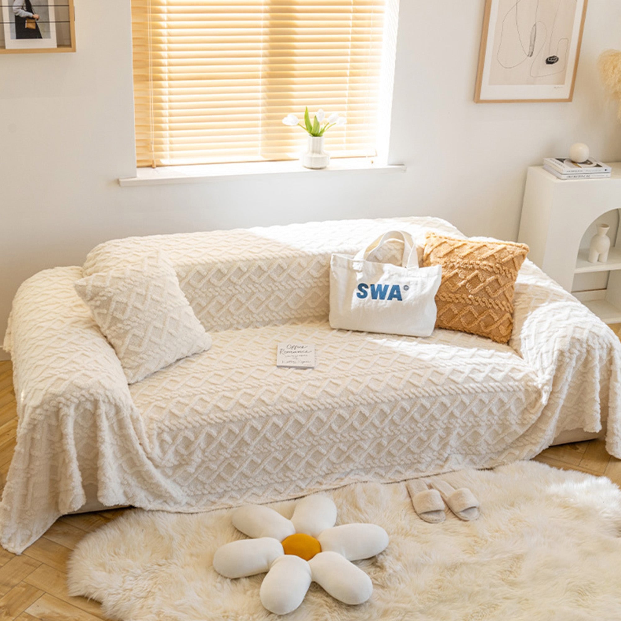 Forvandle stuen din til et koselig tilfluktssted med vårt ultramyke teksturerte sofatrekk. Dette trekket er designet med et luksuriøst geometrisk mønster, og tilbyr både komfort og eleganse, samtidig som det gir utmerket beskyttelse for møblene dine.